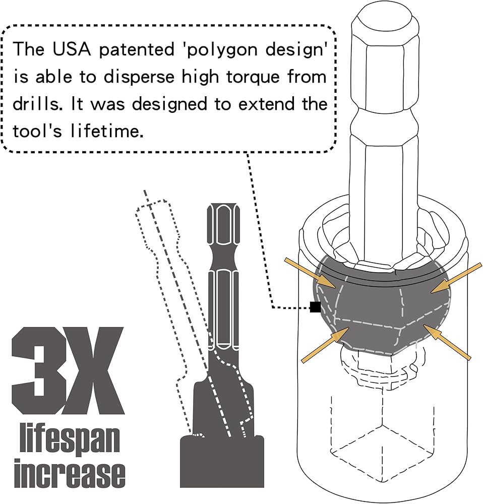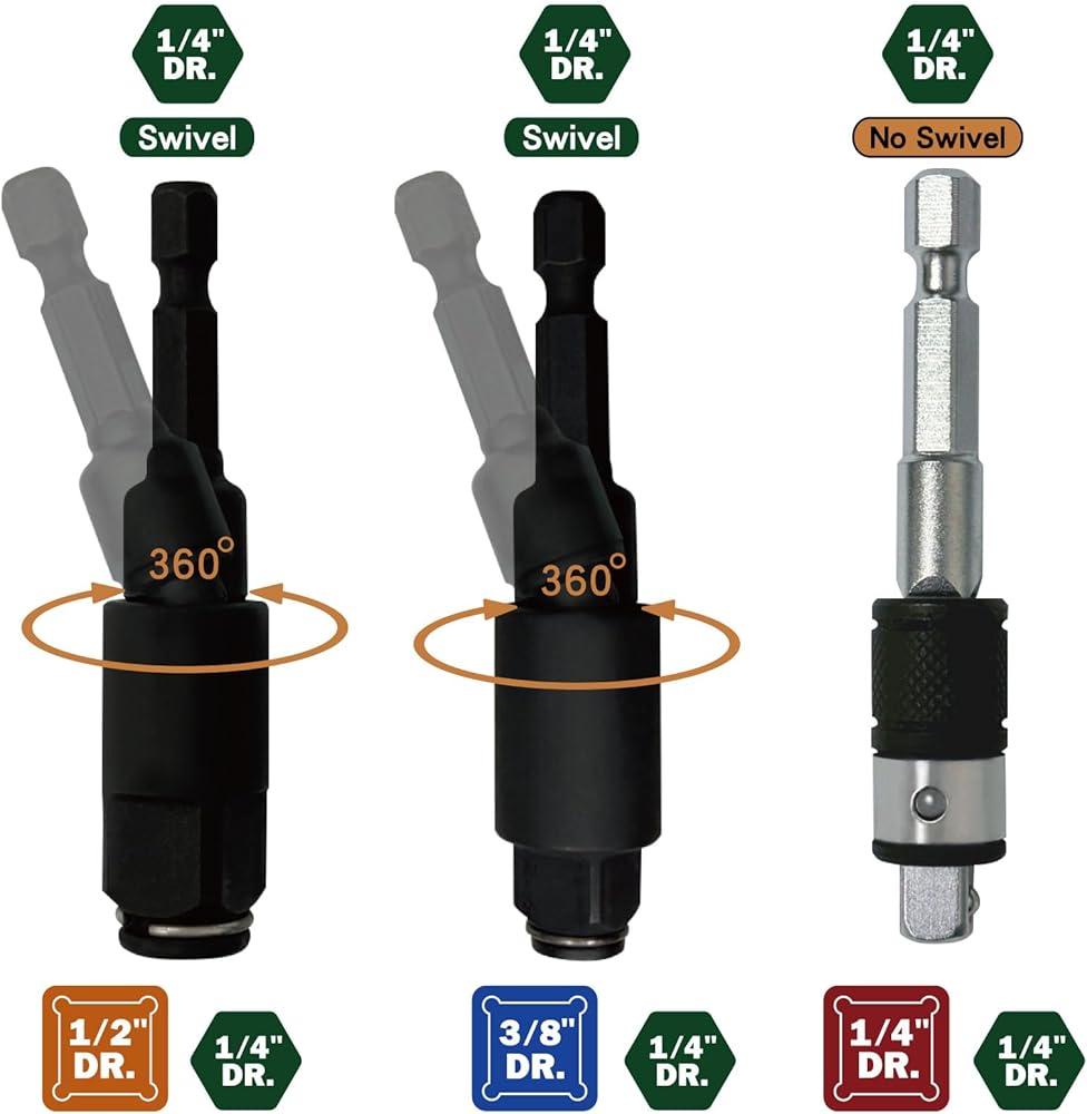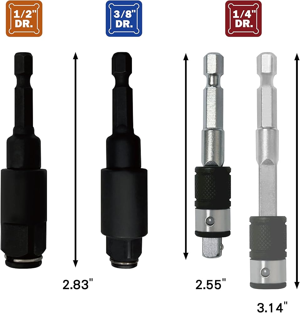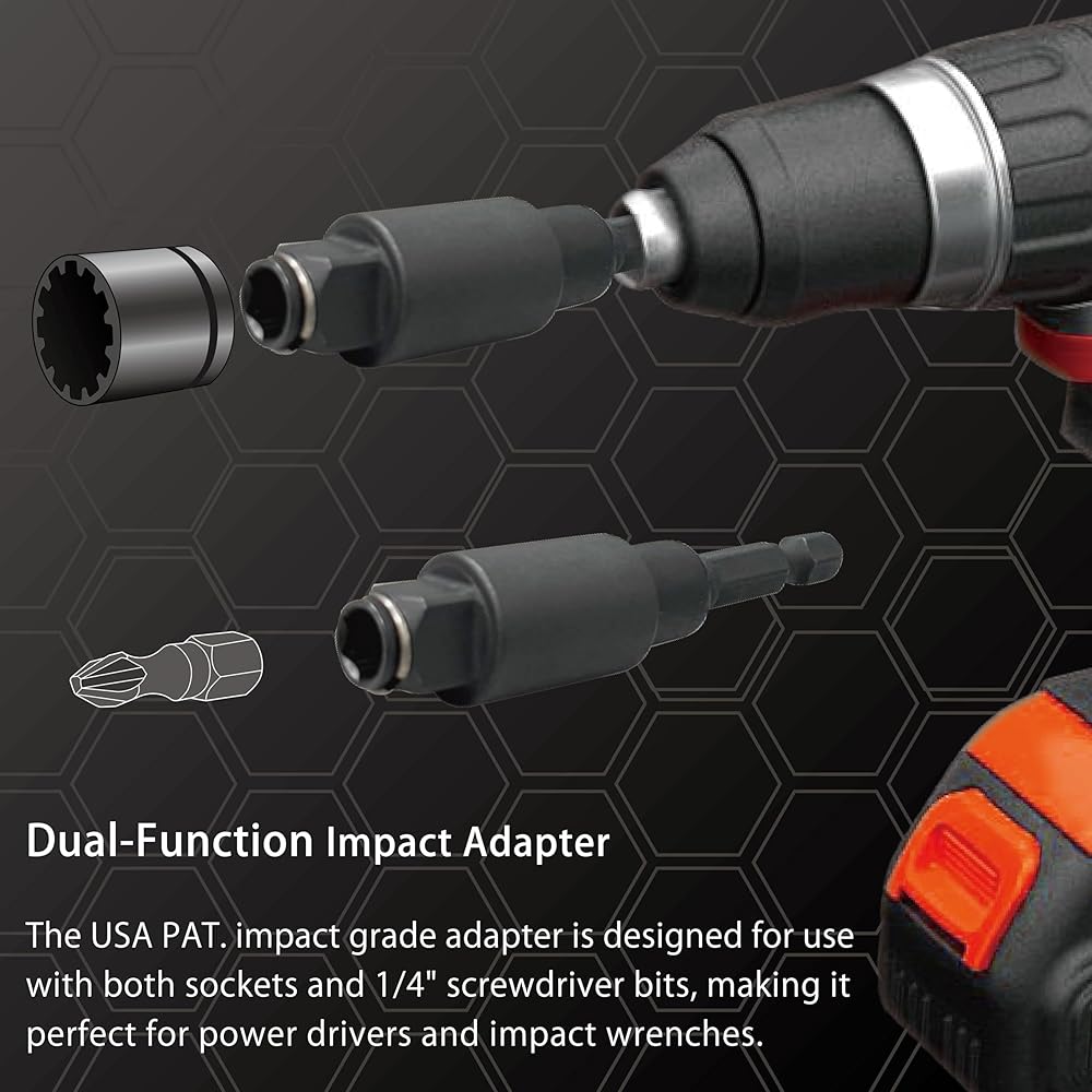 【المتانة】: محول مقاوم للصدمات بالكامل مصنوع من فولاذ قوي من سبائك الكروم والموليبدينوم المعالج بالحرارة، مما يوفر أعلى جودة لمنتج قوي يتيح الاستخدام مع أي مسدس ذو تأثير عزم دوران عالي.
