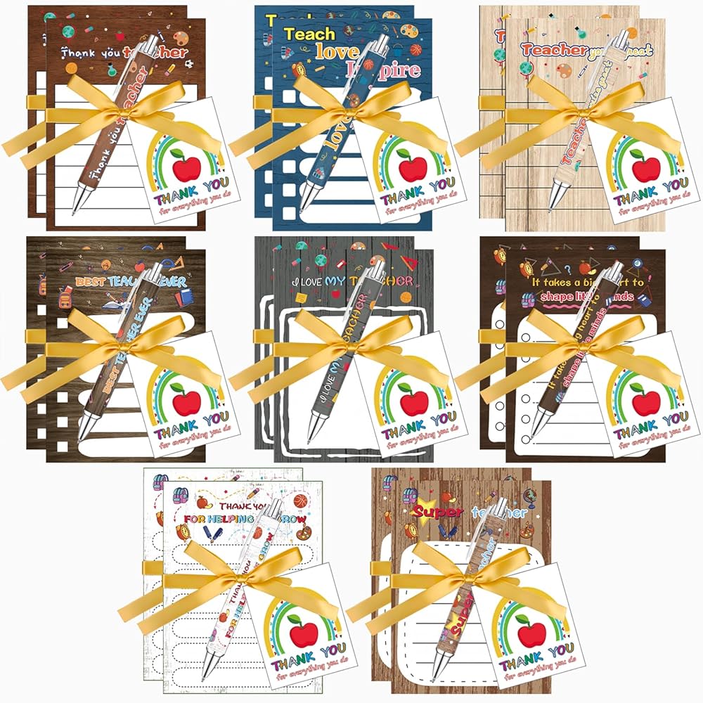 16 Set Teacher Appreciation Gifts - 16 Sticky Notepads 16 Pens 16 Ribbons 16 Thank You Cards 1 Gift Box, Motivational Sticky Notes Inspirational Pens Gift for Office Supplies