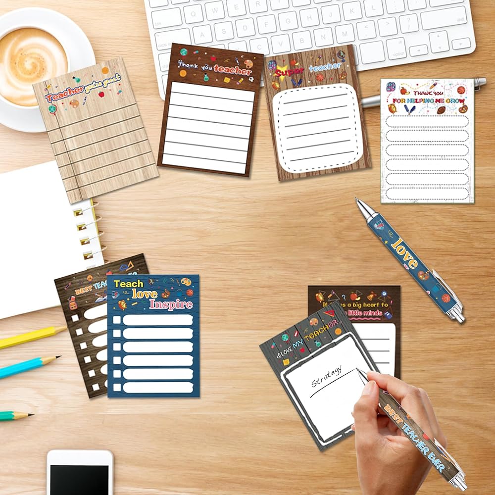Meaningful Teacher Appreciation Gift – Designed with bright colors and classic teacher-themed elements, these sticky notes and pens feature inspiring messages like "Best Teacher Ever" and "Thank You, Teacher," making them a heartfelt way to express gratitude.