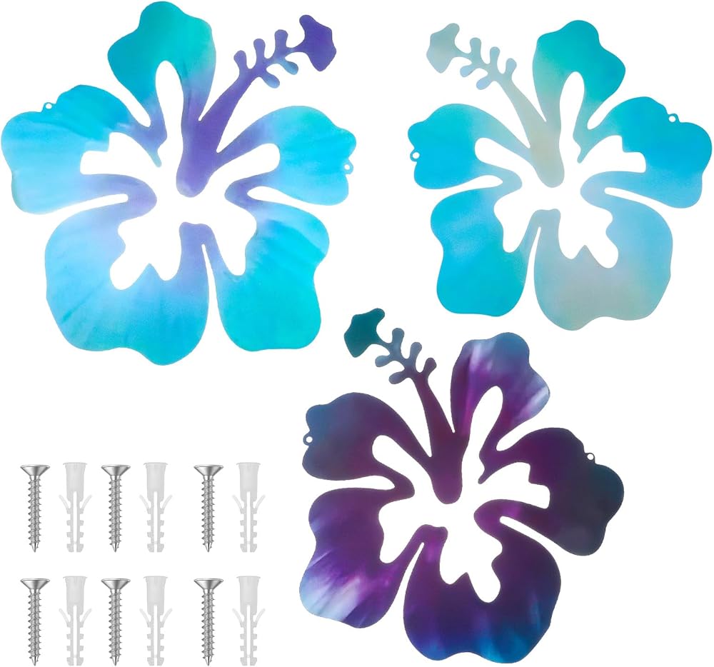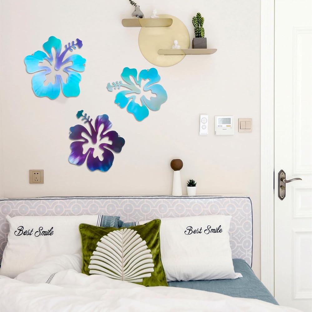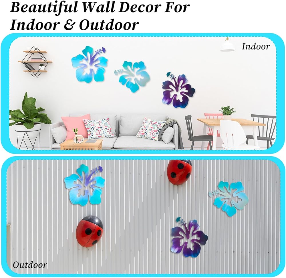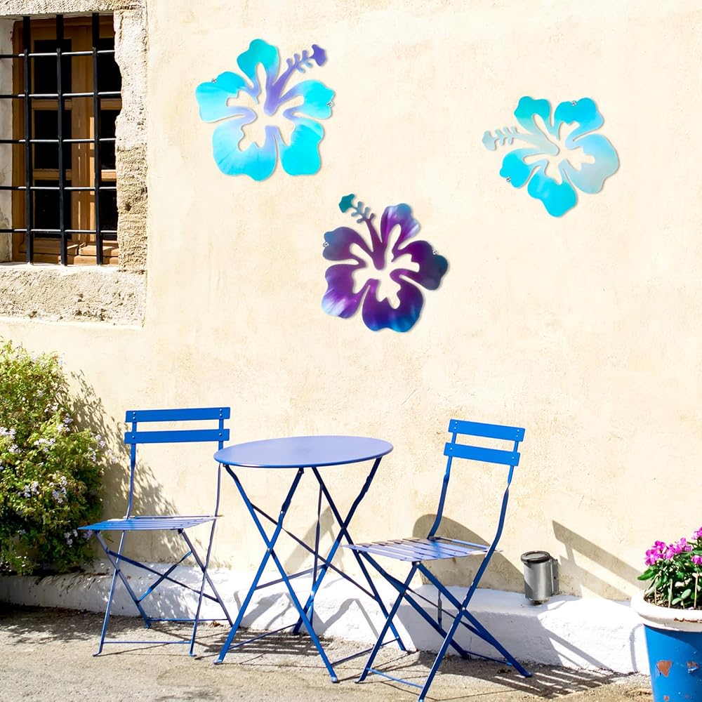 Metal Material: our set of 3 metal hibiscus flower wall decor pieces is crafted masterfully using a robust metal material. This is durability and long-lasting wall decor without losing its vibrant color. The rust-resistant property ensures the aesthetics of your space is maintained in all weather conditions.