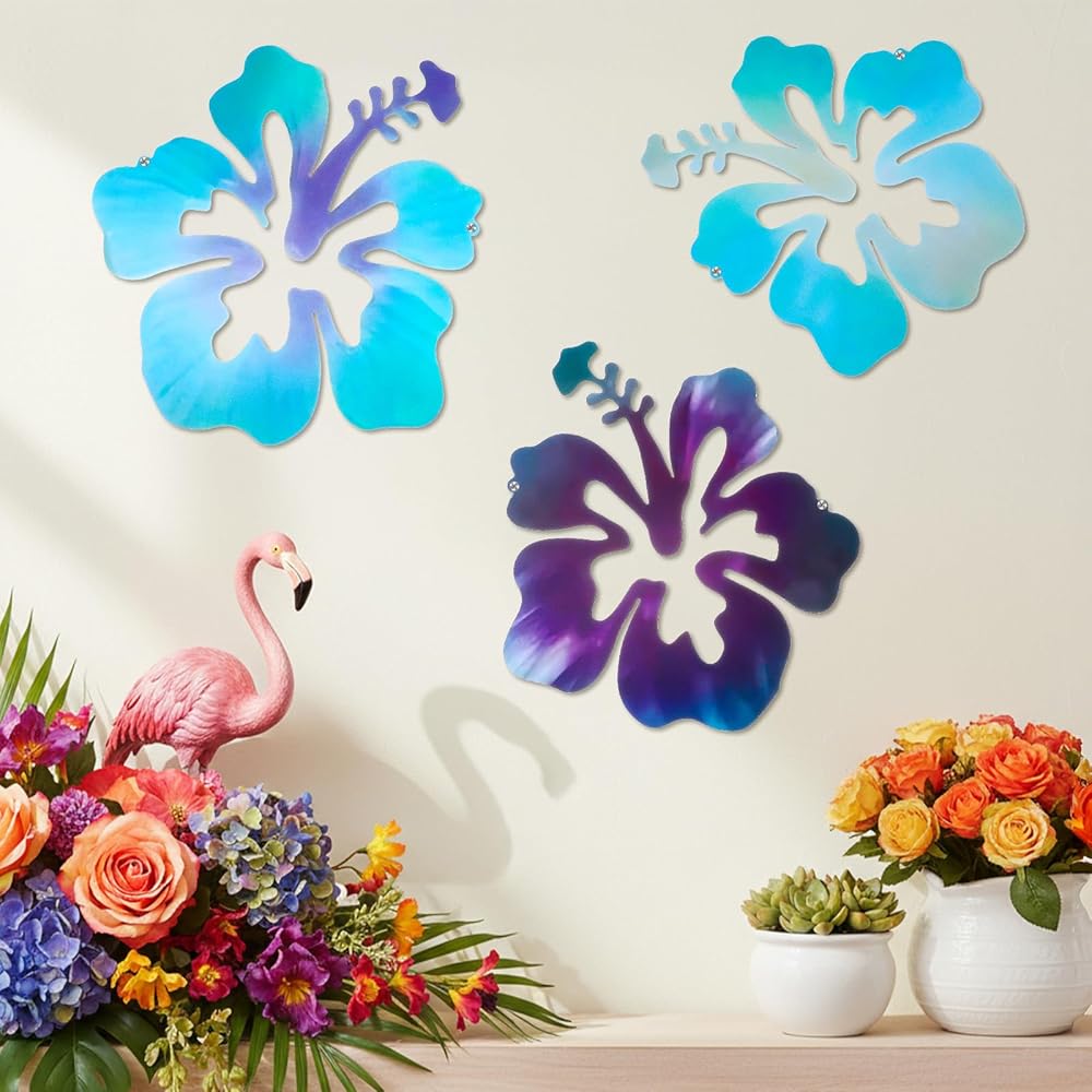 3 Pcs Hawaiian Metal Hibiscus Wall