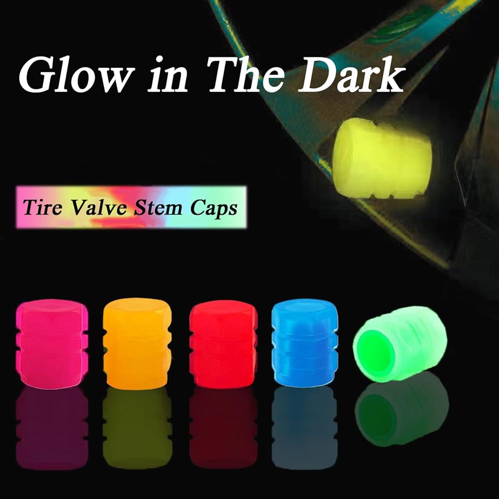 40 Pcs Glowing Tire Valve Stem Caps, Fluorescent Tire Valve Cap, Glow in The Dark Valve Stem Caps Covers for Cars Motorcycles SUV Trucks Bikes (5 Colors)