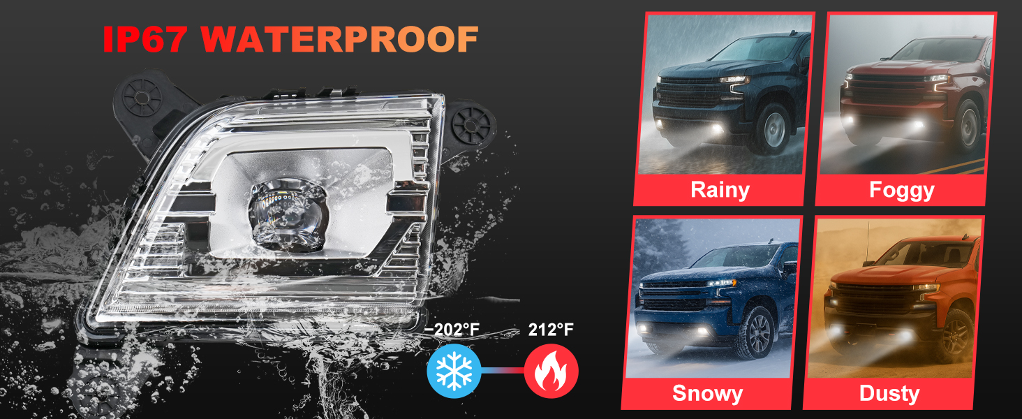 - 【إضاءة واضحة ومشرقة】مجهزة بمصابيح LED، وتوفر إضاءة مشرقة وفعالة، وتعزز بشكل كبير سلامة القيادة أثناء الليل أو المطر أو الثلج أو الضباب الثقيل.