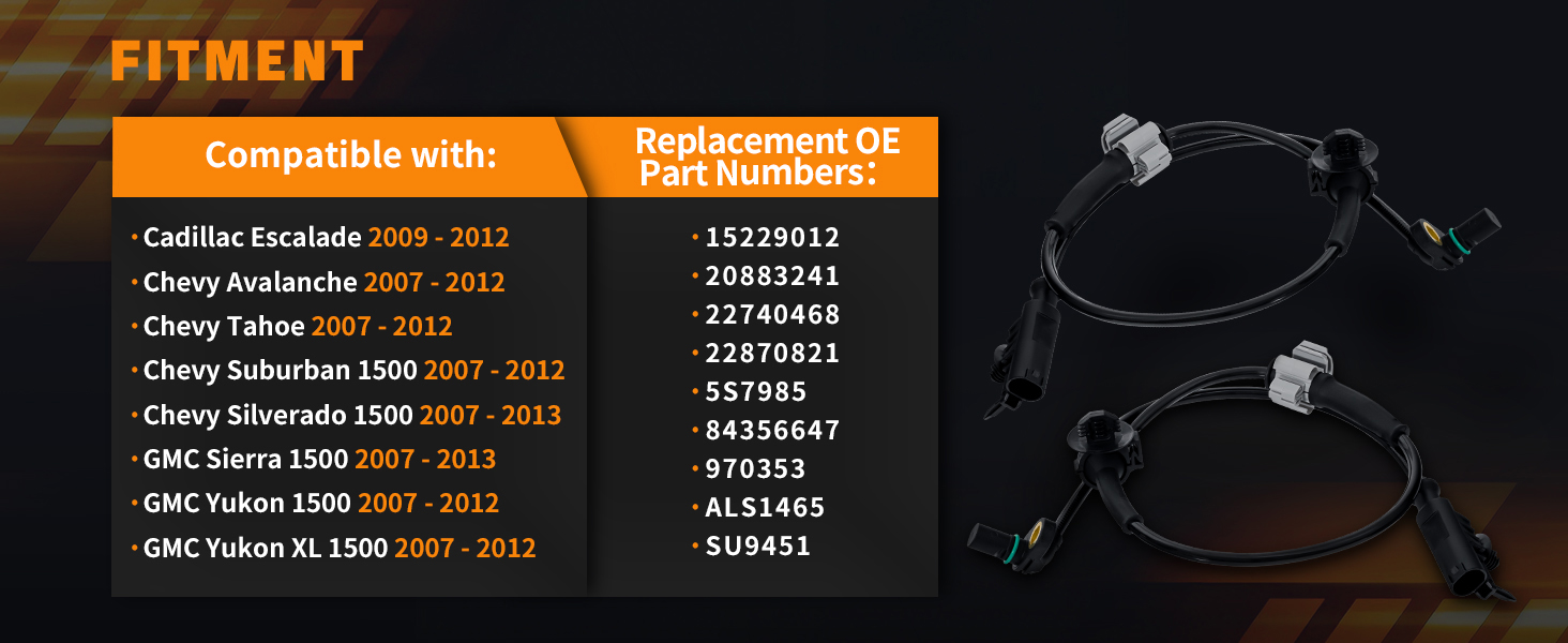 15229012 2 قطعة مستشعر سرعة العجلات الأمامية ABS متوافق مع تشيفي سيلفرادو 1500 سوبربان 1500 أفالانش تاهو جي إم سي سييرا 1500 يوكون 2007-2013 كاديلاك إسكاليد 2009-12 بديل لـ 15229012 ALS1465