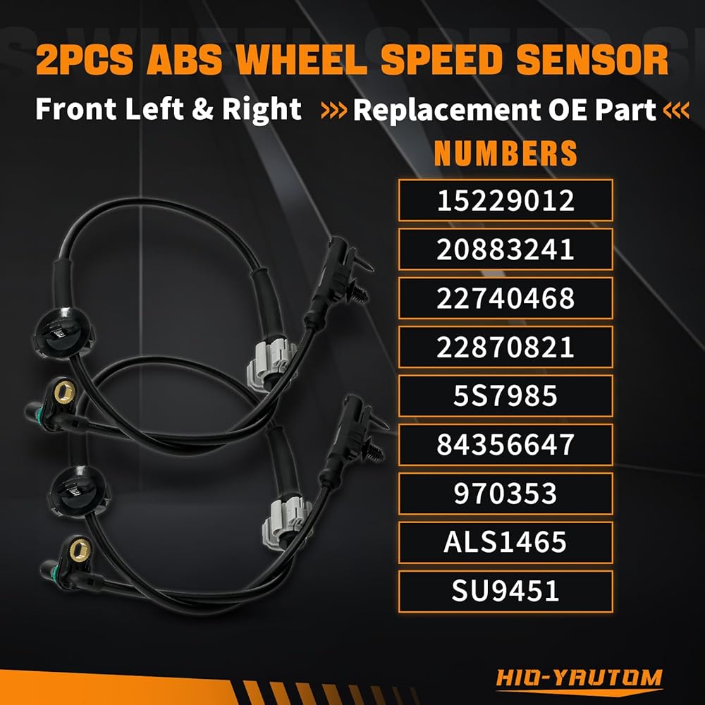 مجموعة مستشعر سرعة العجلات ABS مكونة من 2: تتضمن أجهزة استشعار لسرعة العجلات الأمامية اليسرى واليمنى. تم تصميمه كبديل مباشر لأجهزة استشعار ABS المعيبة لاستعادة الكشف المناسب لسرعة العجلة