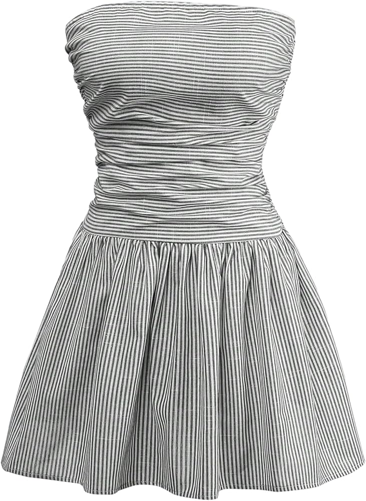 المزايا: فساتين Y2K للسيدات، مخططة، بدون حمالات، بدون ظهر، بدون أكمام، مكشكشة، حاشية مكشكشة، ملابس لطيفة