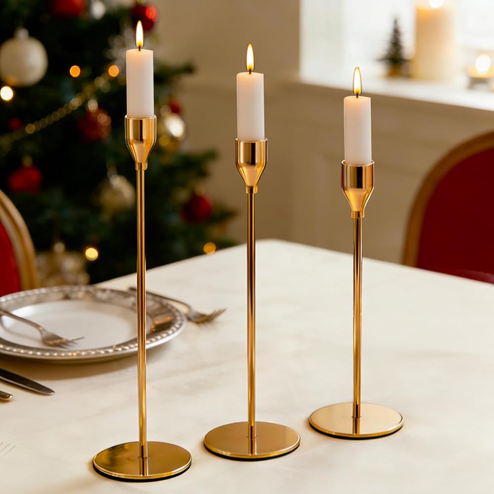 GREAT FOR DECORATION. The tall taper candlesticks can embellish various scenarios, such as weddings, birthday parties, banquets, candlelight dinners, etc. This concise candlestick holder not only has a nice looking to match your decoration but also brings warmth and romance to you.