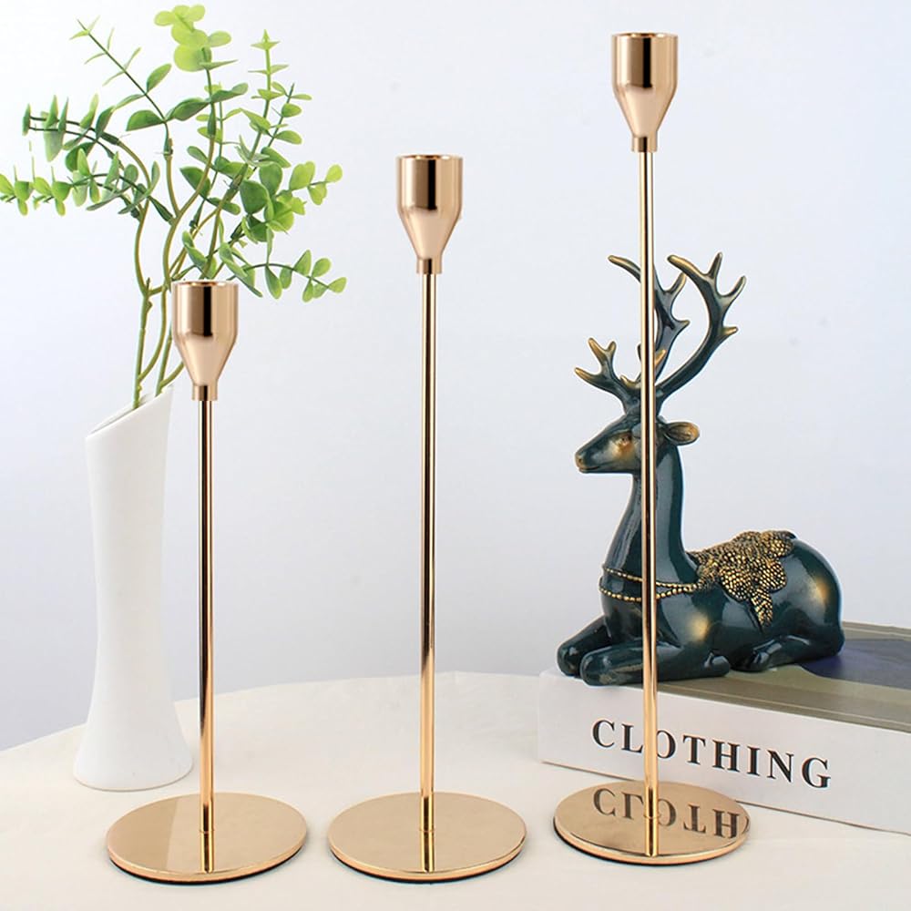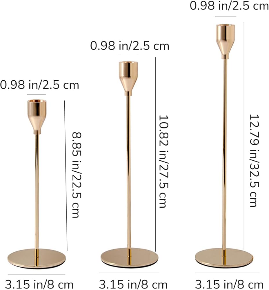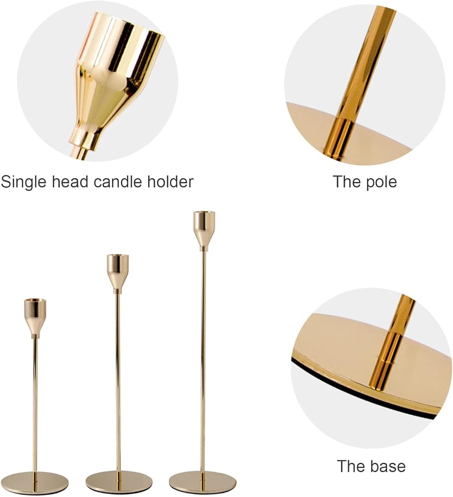 The single-hand candle holders consist of 3 parts which include heavy round bases, slender poles, and special mini-cup-shaped candle holder heads. The taper candle holder is very easy to assemble by simply connecting and tightening the base, pole, and candlestick head. This elegant and classic metal candle holder is suitable for decorating and creating an atmosphere on various occasions, such as wedding receptions, birthday parties, banquets, candlelight dinners, etc.