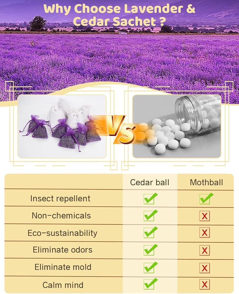 Introducing our exquisite collection of 20 Pack French Dried Lavender Sachet Bags, a natural and enchanting solution for safeguarding your home and refreshing your living spaces. Crafted with care from the finest French lavender, these sachets are not just a delight to the senses but also a powerful ally against moths and other fabric pests. Each sachet is filled with carefully selected, high-quality dried lavender, known for its potent natural properties that deter moths and insects, protecting your closets, drawers, and wardrobes from unwanted guests. The soothing aroma of French lavender not only keeps your garments safe but also infuses your home with a clean, fresh scent that promotes relaxation and well-being. Perfect for placing in closets, drawers, laundry rooms, or any space that could benefit from a touch of freshness, these lavender sachet bags are an eco-friendly alternative to chemical repellents. Their delightful fragrance lasts long, ensuring your home remains protected and pleasantly scented for months. Whether you're looking to preserve the integrity of your precious garments, seeking a natural way to freshen your home, or simply in love with the timeless scent of lavender, our 26 Pack French Dried Lavender Sachet Bags are the perfect choice. Embrace the natural power of lavender and transform your living environment into a serene, moth-free sanctuary.