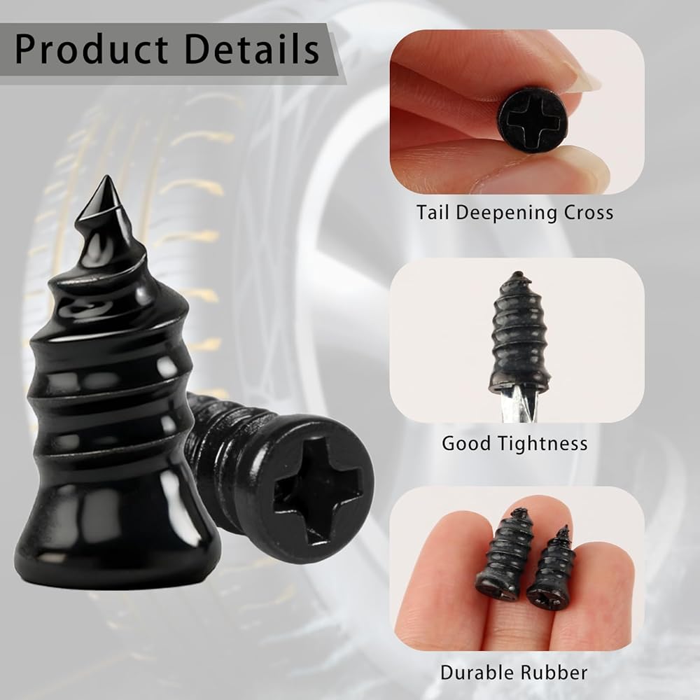 إغلاق مثالي: سطح مسامير إصلاح الإطارات هذه مغطى بطبقة من الختم المطاطي. يمكنك استخدام مفك البراغي المرفق لتثبيته في الإطار. يتناسب الإطار والمسمار بإحكام لمنع تسرب الهواء ودخول الماء.