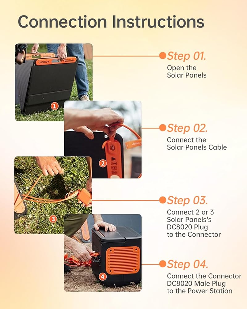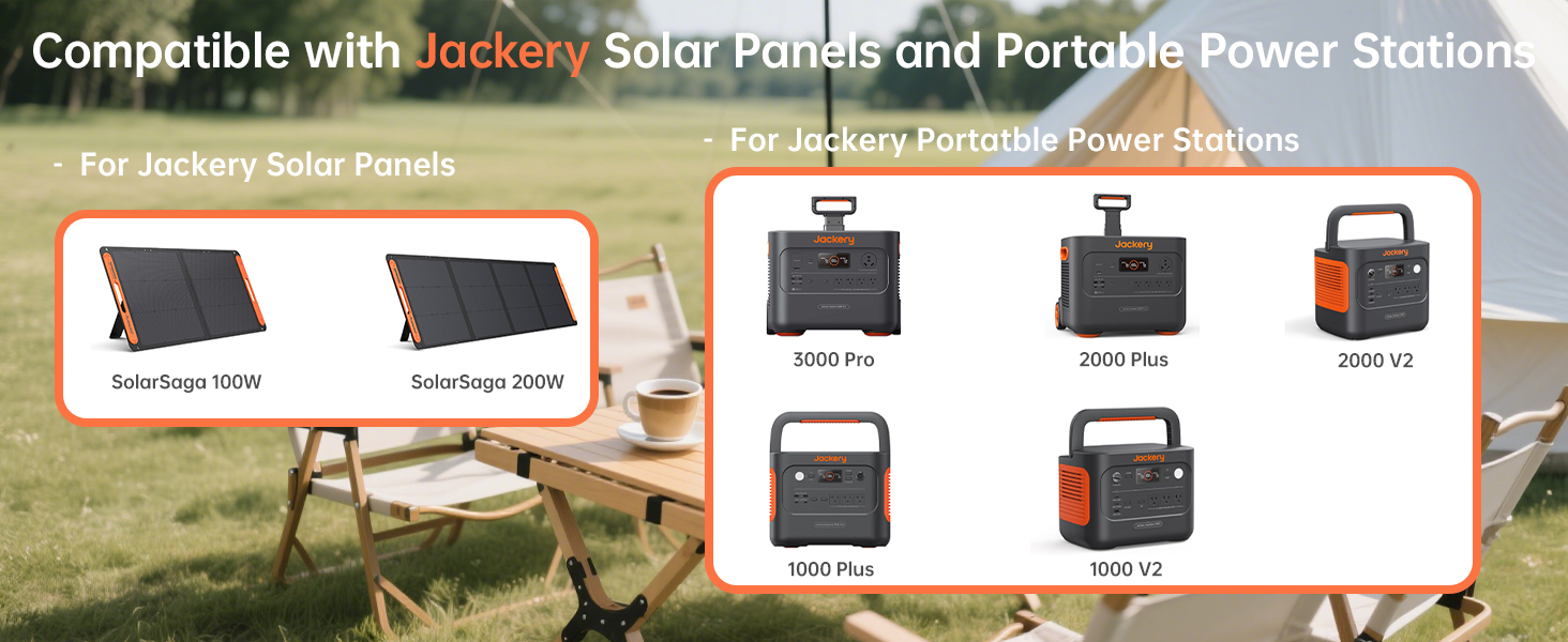 • [نماذج متوافقة] هذا الموصل الشمسي متوافق مع محطة الطاقة المحمولة Jackery Explorer 3000 Pro / 2000 Plus/ 2000 V2/ 1000 Plus/ 1000 V2 ولللوحة الشمسية Jackery SolarSaga 200W/ SolarSaga 100W.