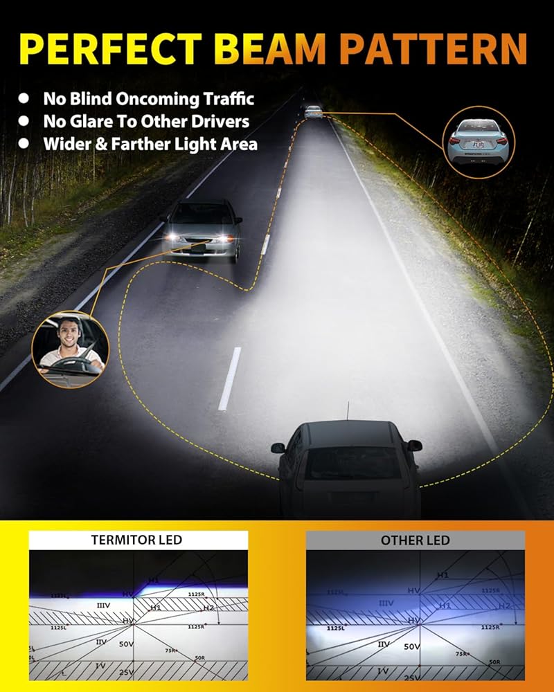 سطوع ورؤية استثنائية: استمتع برؤية فائقة مع مصابيح H7 Powersports فائقة السطوع. مثالية للقيادة الليلية والظروف الجوية السيئة، مما يضمن السلامة من خلال رؤية محيطية محسنة ورؤية أكثر وضوحًا للطريق.