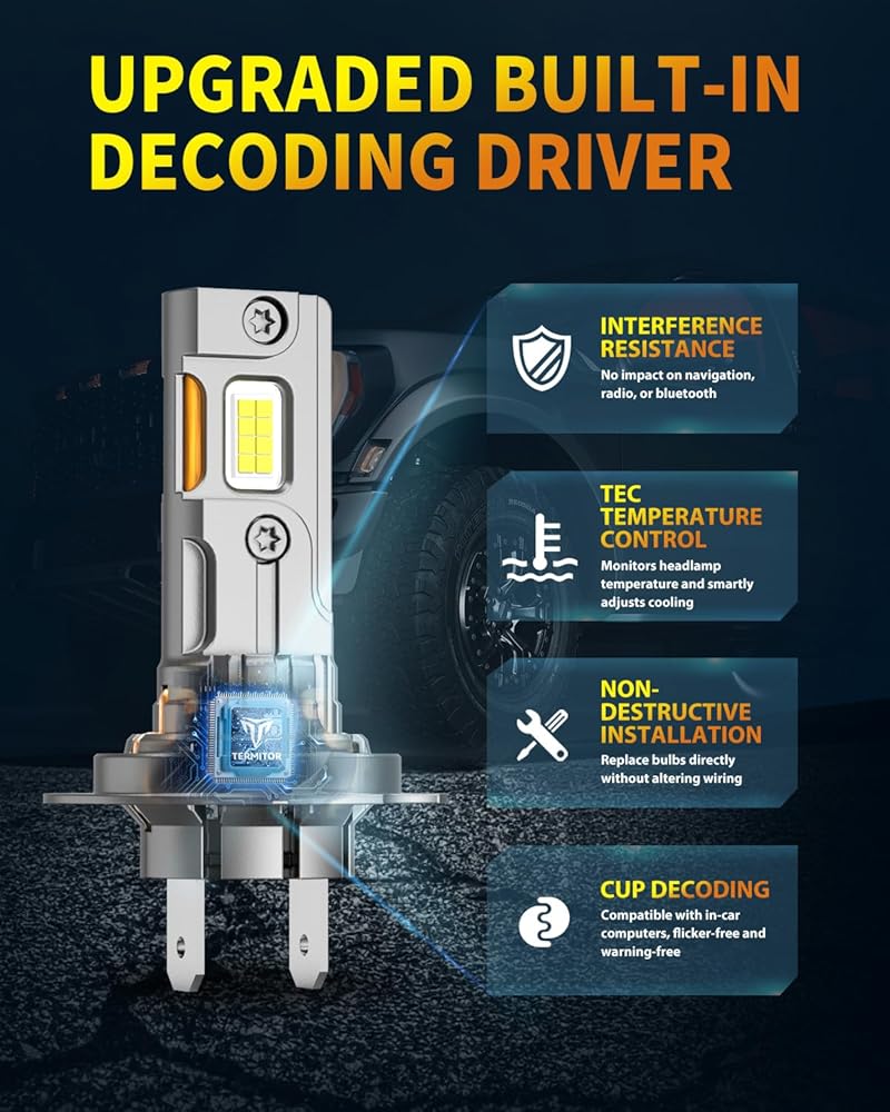 التوافق العالمي والإعداد السريع: تم تصميم مصابيح H7 Powersports هذه لمجموعة متنوعة من نماذج المركبات، وتم تصميمها لتركيب بديل مباشر خالٍ من المتاعب، مما يجعل من السهل ترقية إضاءة سيارتك دون أي تعديلات.