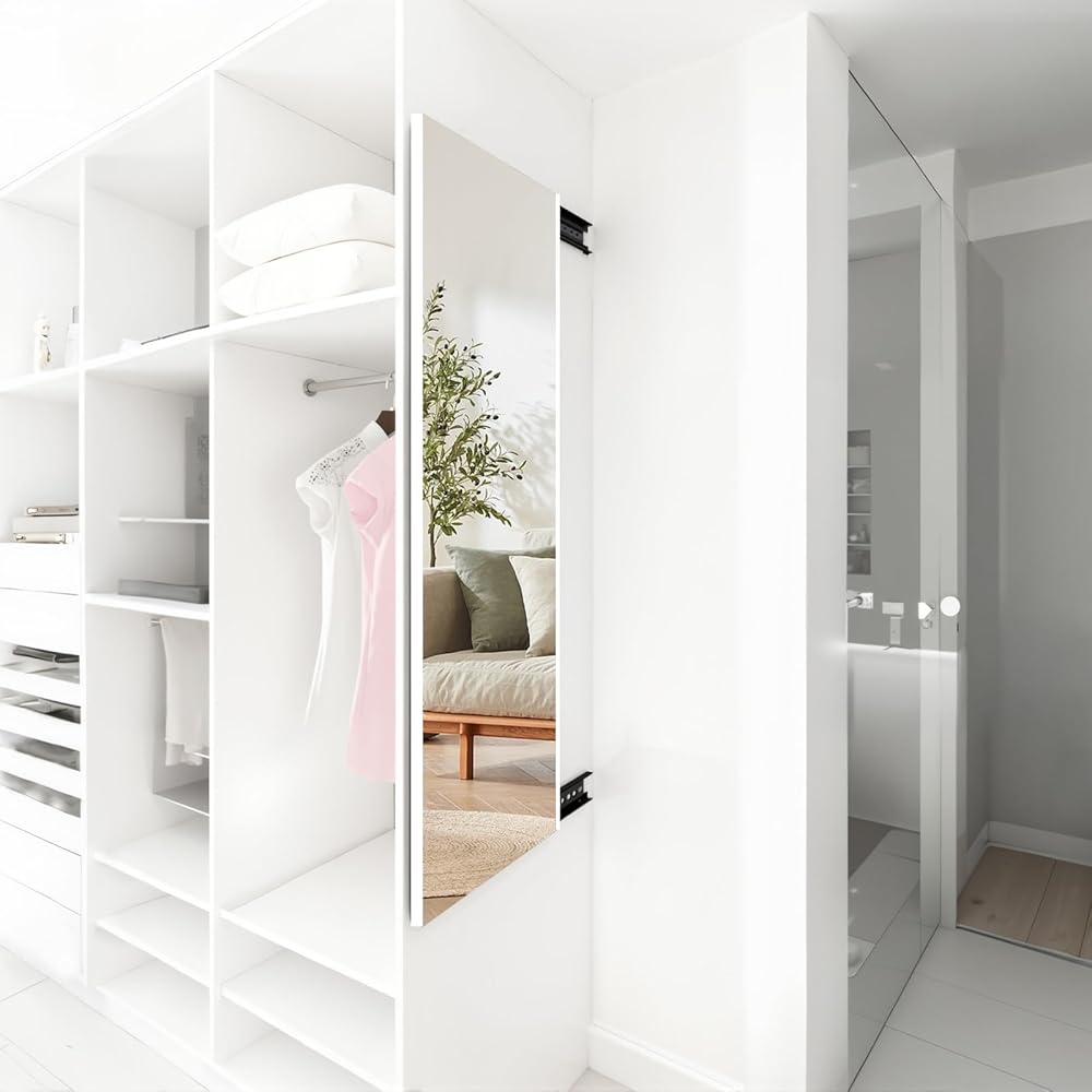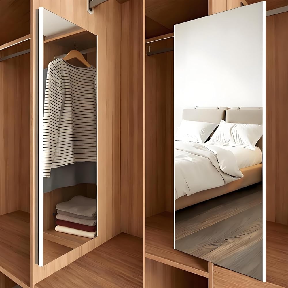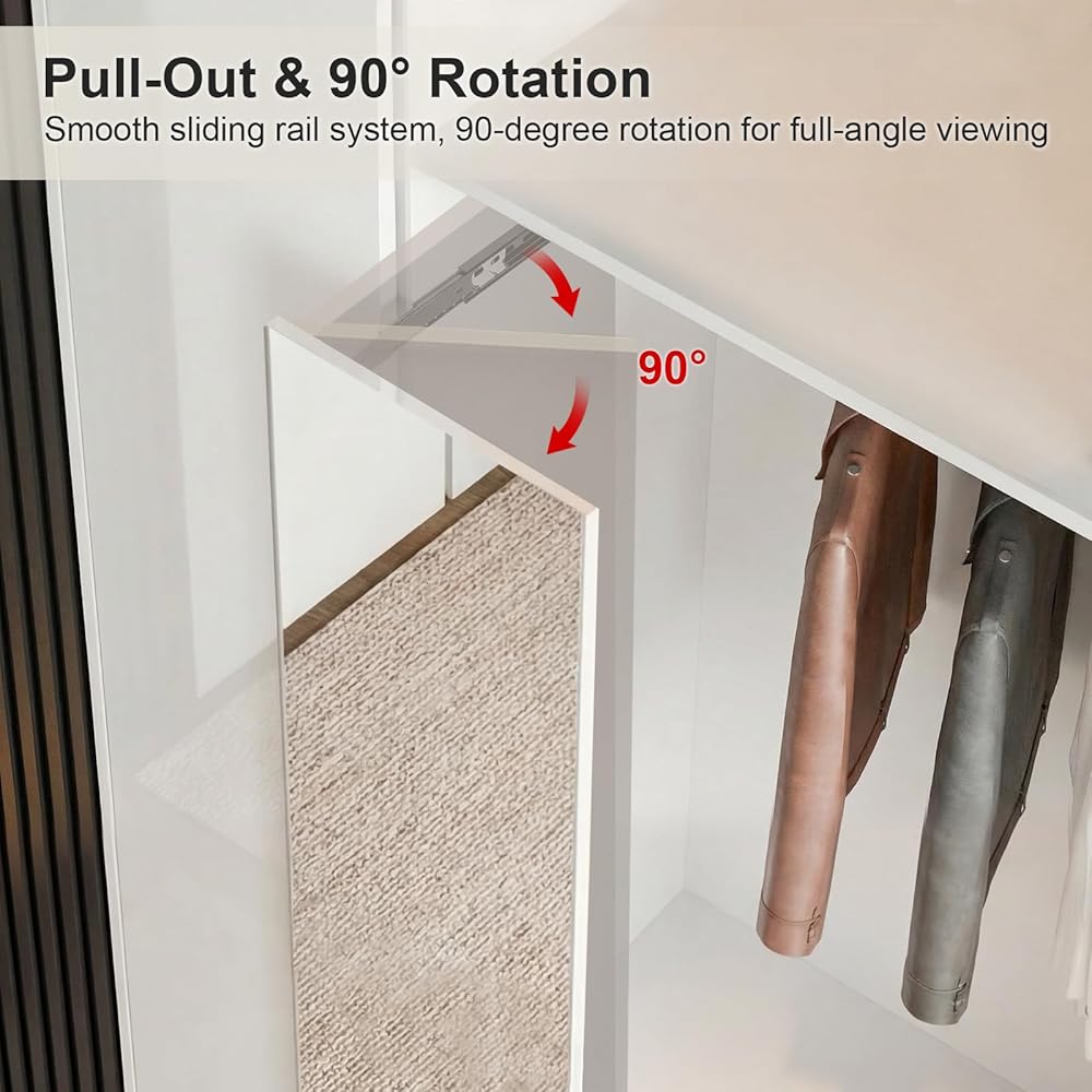 Pull Out & Rotate for Full Body View - Smooth sliding rail allows the sliding mirror to pull out easily and rotate up to 90°, giving you a full-length reflection when needed — and completely hidden when not in use. Perfect space-saving solution for closets and wardrobes