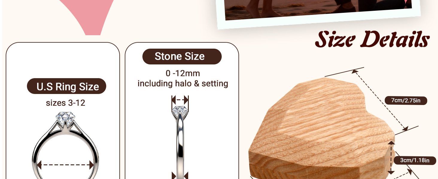 ثلاثة أشكال ذات معنى - اختر المستطيل الكلاسيكي، أو صندوق الخاتم المحبب على شكل قلب، أو علبة الخاتم المبهرة على شكل الماس لترمز إلى التزامك بشكل مثالي.