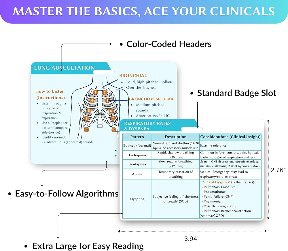 Clear & Legible Layout - These respiratory therapist accessories feature a 10x7cm design, allowing for detailed charts that are easy to scan without eye strain. The high-contrast text offers quick visibility in dim ICU settings, while remaining lightweight and fitting perfectly on your respiratory badge reel.