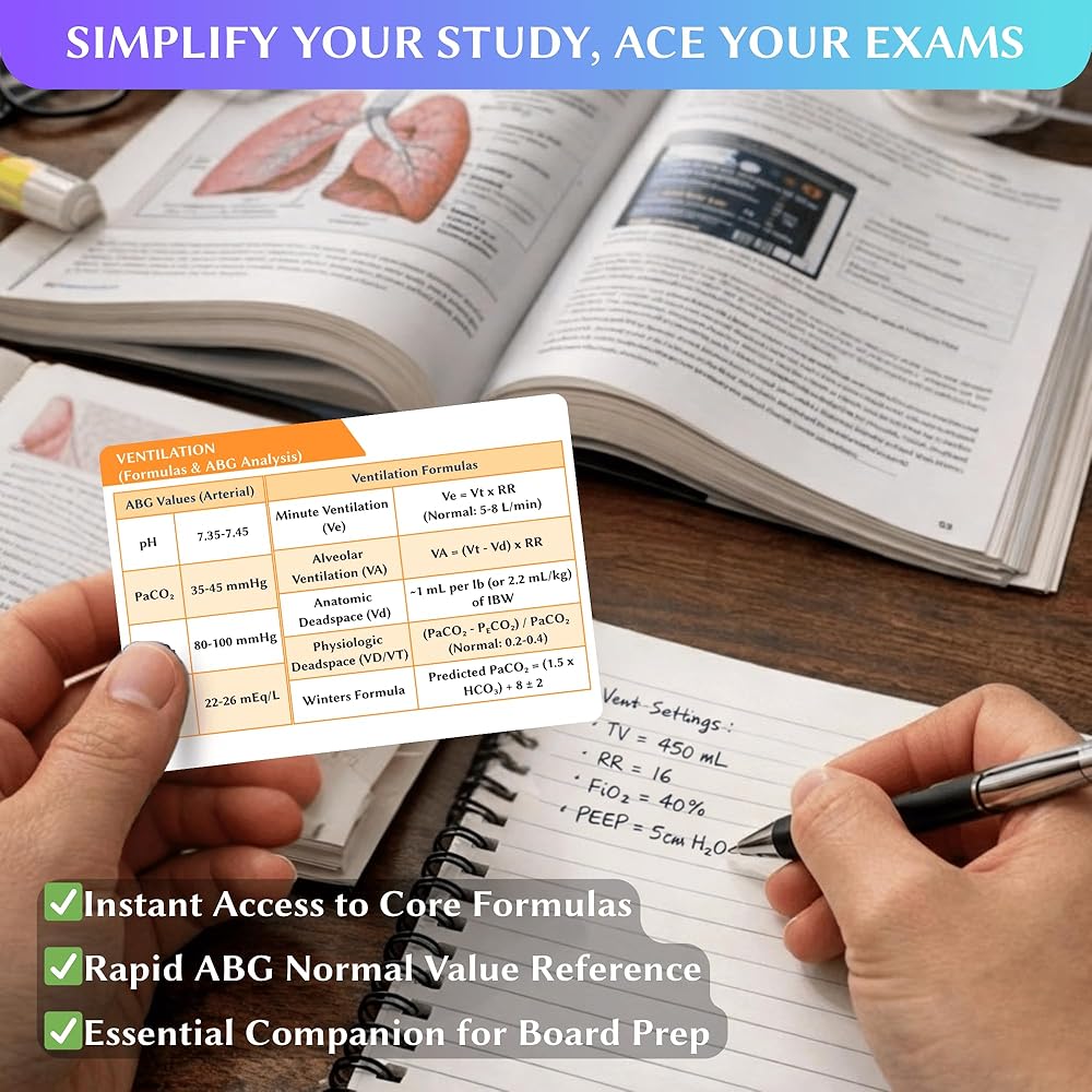 Zero-Guesswork Clinical Math - Stop memorizing formulas. Features instant reference tables for Tidal Volume (PBW Men/Women), ABG analysis, and Oxygenation. Essential respiratory therapy student essentials for accurate, on-the-spot calculations and patient safety.