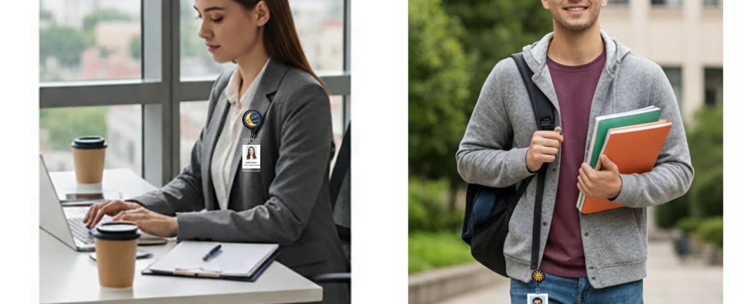 مشبك التمساح: يتميز مشبك شارة الهوية الجمالي هذا بمشبك تمساح دوار 360 درجة، مما يساعد على تقليل الاحتكاك أثناء الاستخدام اليومي. يمكن ربطها بسهولة بالحبال والأحزمة والجيوب والمزيد.