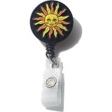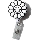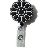 المواد: بكرة شارة لطيفة وجه زهرة مبتسمة مصنوعة من مادة أكريلونتريل بوتادين ستايرين عالية الجودة، ومشبك تمساح دوار وسلك من النايلون مناسب تمامًا لحاملي الشارات.