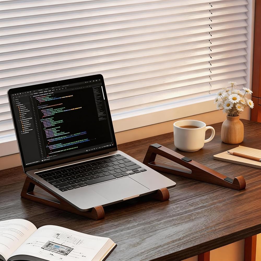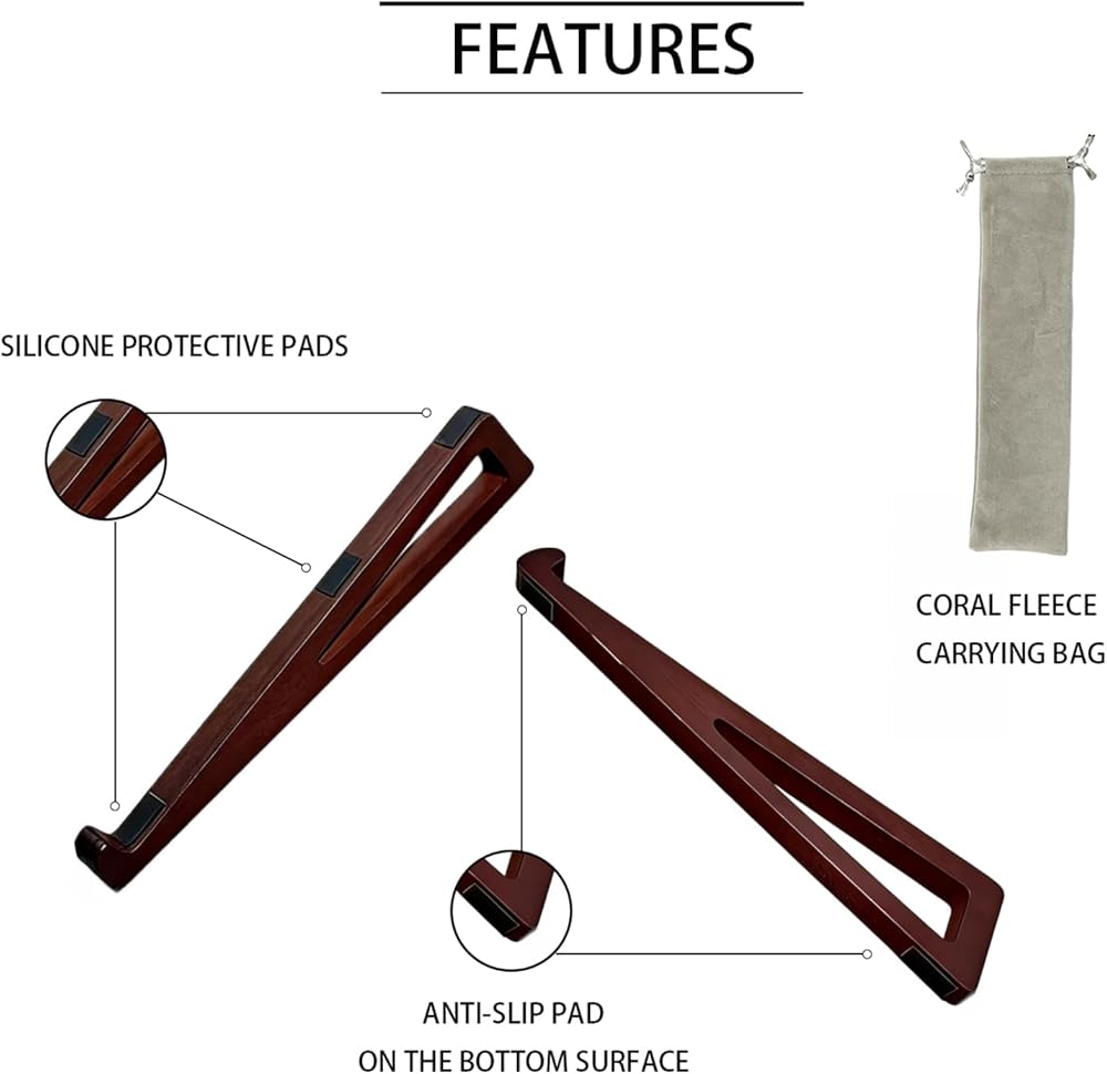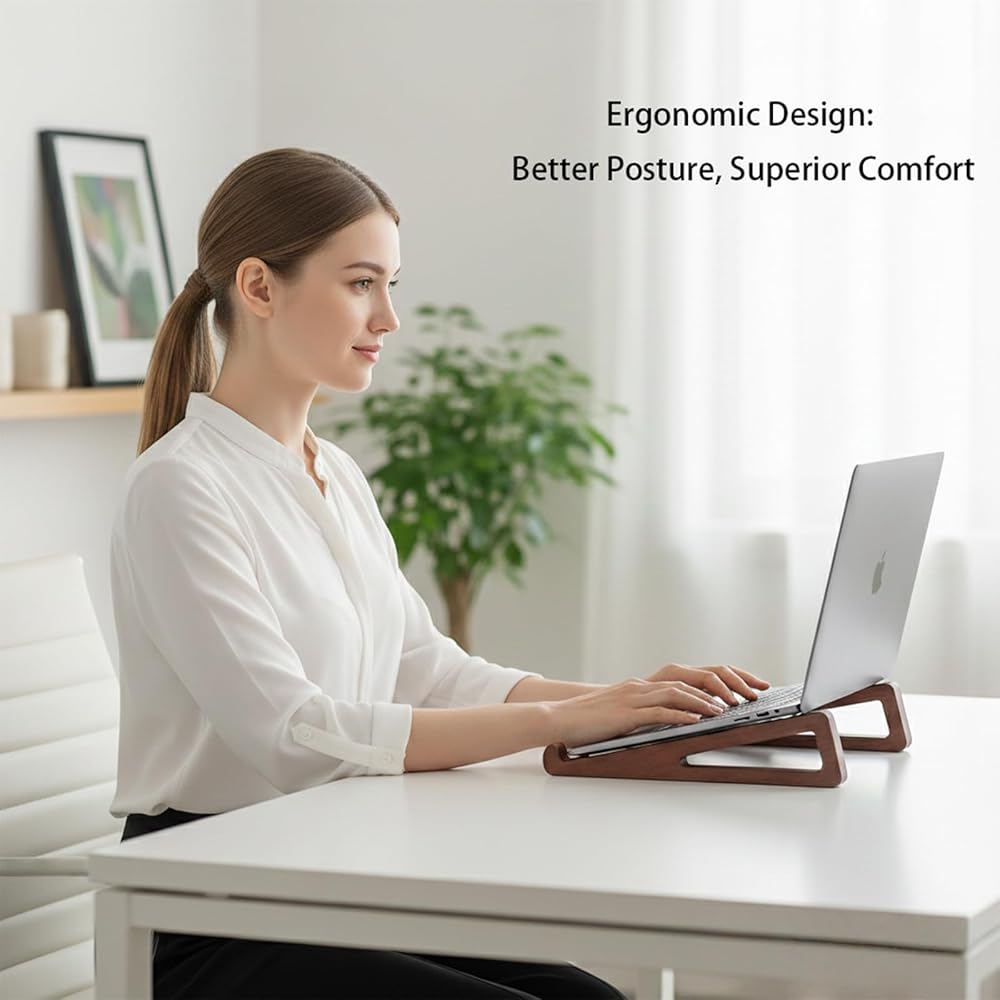 Premium Wooden Laptop Stand, Ergonomic Height-Adjustable Notebook Riser with 360° Cooling, Anti-Slip Stability, Ultra-Portable Design for 10-15.6 Inch Laptops, MacBooks & Tablets Tired of neck pain, stiff shoulders, and overheating laptops? Meet your new desk essential—the Premium Wooden Laptop Stand, designed to boost comfort, protect your device, and upgrade your workspace, whether you're at the office, working from home, or on the go. Ergonomic Posture Correction – Elevate your screen to eye level and get the perfect typing angle, eliminating neck strain and wrist fatigue for hours of comfortable work. Ideal for remote workers, students, and professionals. Max Cooling & Airflow – Our minimalist two-piece design provides unobstructed ventilation, preventing laptop overheating during heavy use. Maintain peak performance and extend battery life for your MacBook, PC, or tablet. Rock-Solid Stability & Protection – Anti-slip silicone pads on top and bottom secure your laptop and protect your desk from scratches. No wobbling—just a sturdy base for all your tasks. Ultra-Portable – Detachable, compact design slides together easily and fits into the included ultra-soft coral fleece pouch. Perfect for digital nomads—toss it in your backpack for coffee shops, libraries, or travel. Universal Compatibility & Timeless Aesthetic – Width-adjustable to fit 10-15.6-inch laptops, MacBooks, and large tablets. Natural wood grain adds a warm, minimalist touch to any desk setup. Why Choose Us? Premium wood for durability and a sleek look Ergonomic design reduces pain and improves posture ventilation keeps devices cool Anti-slip pads for stability and desk protection Ultra-portable with included carrying pouch Universal fit (10-15.6 inches) Upgrade your workday—order your Premium Wooden Laptop Stand today! Package Includes: 1 x Detachable Wooden Laptop Stand, 1 x Ultra-Soft Coral Fleece Carrying Pouch