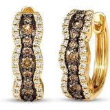 ELEGANT DESIGN: Beautiful huggie hoop earrings featuring a wave pattern with alternating brown and white diamonds set in 14K yellow gold finish