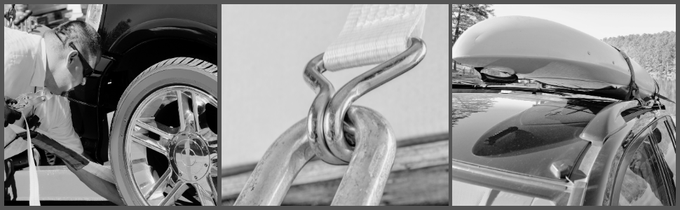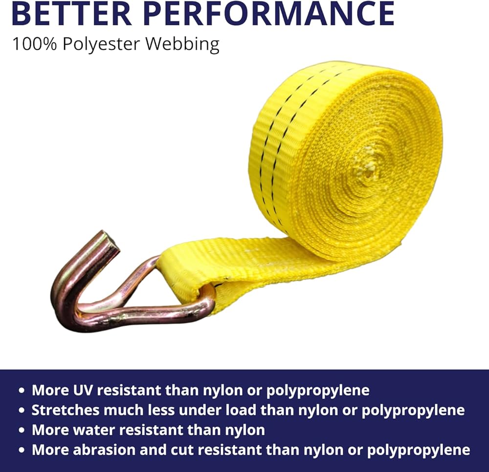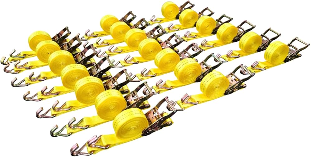 أحمال ثقيلة آمنة: أحزمة ربط بسقاطة بطول 1.5 سم × 15 قدم مع قوة كسر تبلغ 4400 رطل وحد حمل عمل يصل إلى 1.666 رطل، مصممة لتأمين البضائع بأمان أثناء النقل