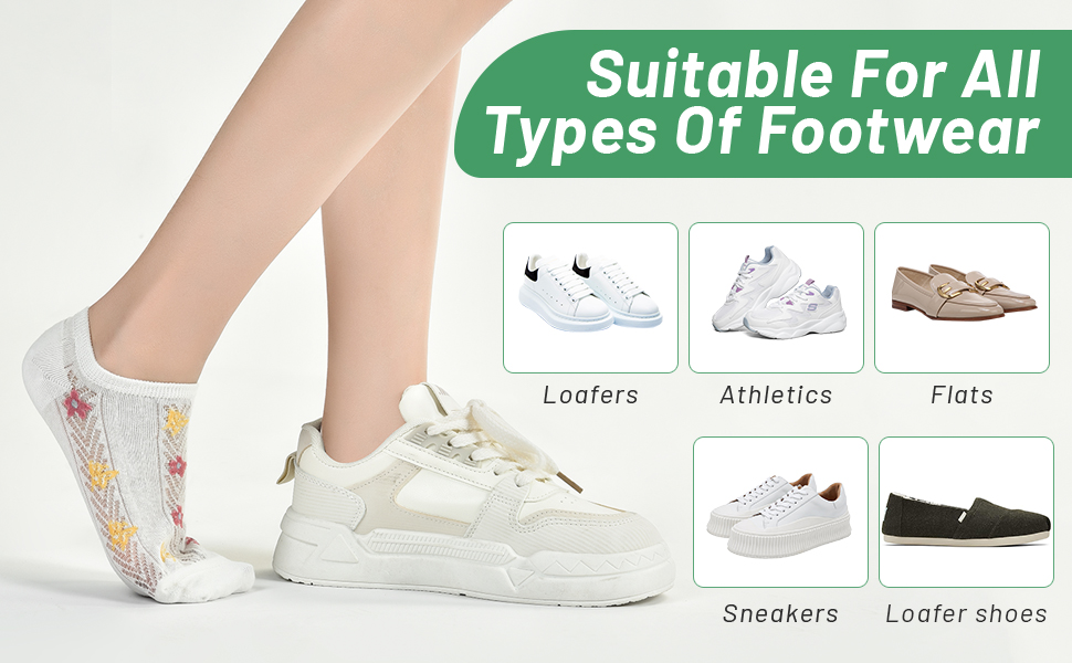 Features: No show, non-slip, lightweight, soft, breathable, durable, and comfortable. Take these women's no-show socks for flats home with you today! They are the must no slip footie socks that help you transition well all the year round!