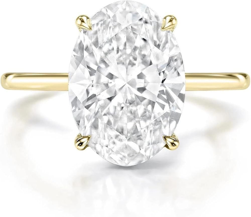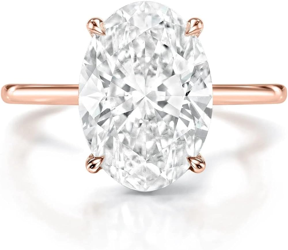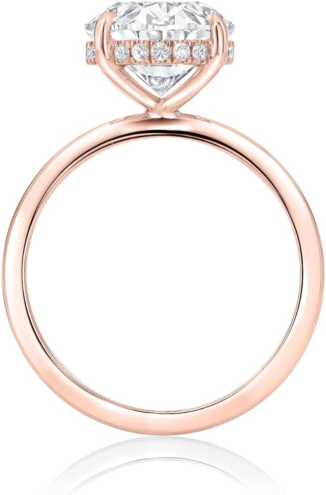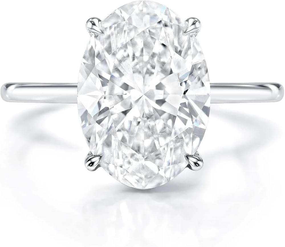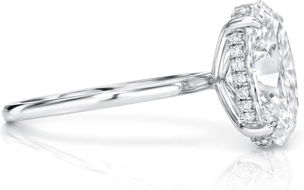 3.5 CT Elongated Oval Moissanite Anniversary Rings for Women Handmade Wedding Bridal Ring Solitaire Hidden Halo Silver 10k 14k 18k Solid Gold Anniversary Promise Gifts For Her