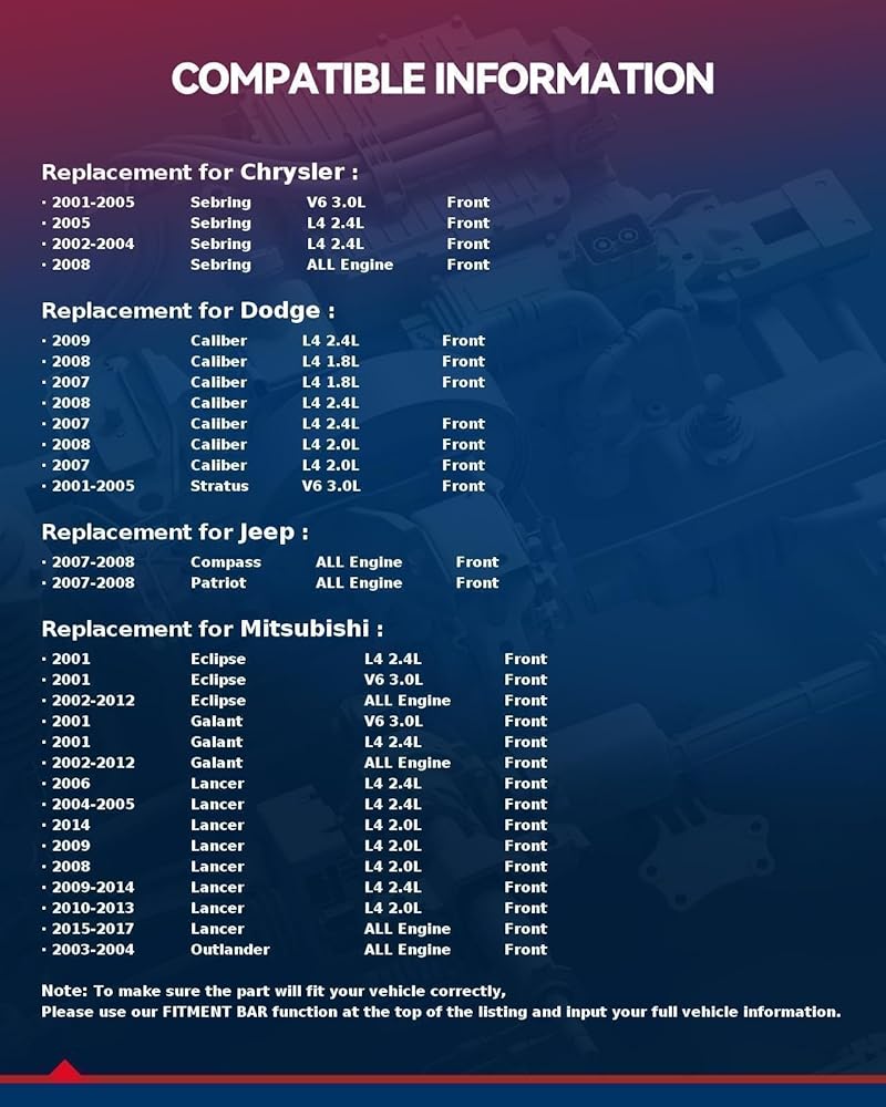 توافق دقيق للمركبة: تم تصميم وسادات فرامل KAX وتصنيعها وفقًا لمواصفات OE، وهي مناسبة تمامًا لدوارات الفرامل الأمامية وما بعد البيع. مناسب لميتسوبيشي أوتلاندر سبورت 2011-2023، ميتسوبيشي أوتلاندر 2003-2004 2007-2020، ميتسوبيشي لانسر 2004-2006 2008-2017، يرجى التحقق من توافق وسادة الفرامل هذه مع سيارتك قبل الشراء.