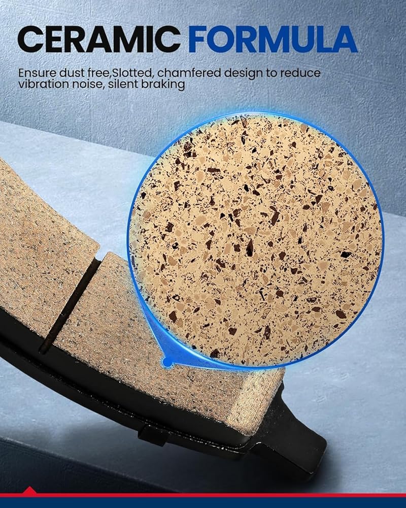 مادة متينة: تم تصنيع وسادات الفرامل هذه باستخدام مواد سيراميك عالية الجودة، وهي مقاومة للتآكل والتآكل، مما يزيد من عمرها الافتراضي وموثوقيتها.