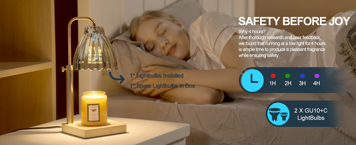 【إضاءة النوم مع 4 وظائف سطوع وتوقيت】يحتوي سخان شمعة المصباح على 4 مستويات من درجة حرارة الارتفاع القابلة للتعديل (0%-25%-50%-75%-100%)، كلما كان السطوع أقوى، كلما ذوبان الشمعة بشكل أسرع. علاوة على ذلك، فهي تتمتع بدرجة حرارة لون سحرية تتراوح من 0 إلى 2800 كلفن. ويمكن إيقاف تشغيل مصباح الشموع الخاص بنا عن طريق ميزة المؤقت 1H/2H/3H/4H، لا داعي للقلق بشأن نسيان وقت التسخين أثناء الاستمتاع بالعطر، مع راحة البال والنوم واللعب في أي وقت.