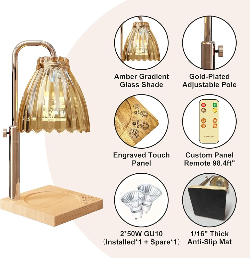 【أفضل الهدايا وديكور منزلي مثالي】 عمود المصباح المعدني الذهبي لمصباح الشمع الذائب وقاعدة خشبية مع وسادات مضادة للانزلاق في الجزء السفلي مما يجعلها إضافة أنيقة وعملية لأي غرفة! يتميز سخان الشموع بلون ذهبي/كهرماني ناعم يكمل محيطه، مما يجعله الخيار الأمثل لخلق جو دافئ وجذاب. إنها مناسبة للاستخدام في غرفة المعيشة وغرفة النوم وغرفة اليوغا والمطبخ، حتى تتمكن من الاستمتاع بفوائدها أينما ذهبت! يتم تعبئة استخدام الأداء بشكل جميل! إنه الخيار الأفضل للهدايا في عيد الأم، وعيد الفصح، وعيد الأب، وعيد المعلم، والهالوين، وعيد الشكر، والكريسماس، وعيد الحب، والتخرج، وأعياد الميلاد!