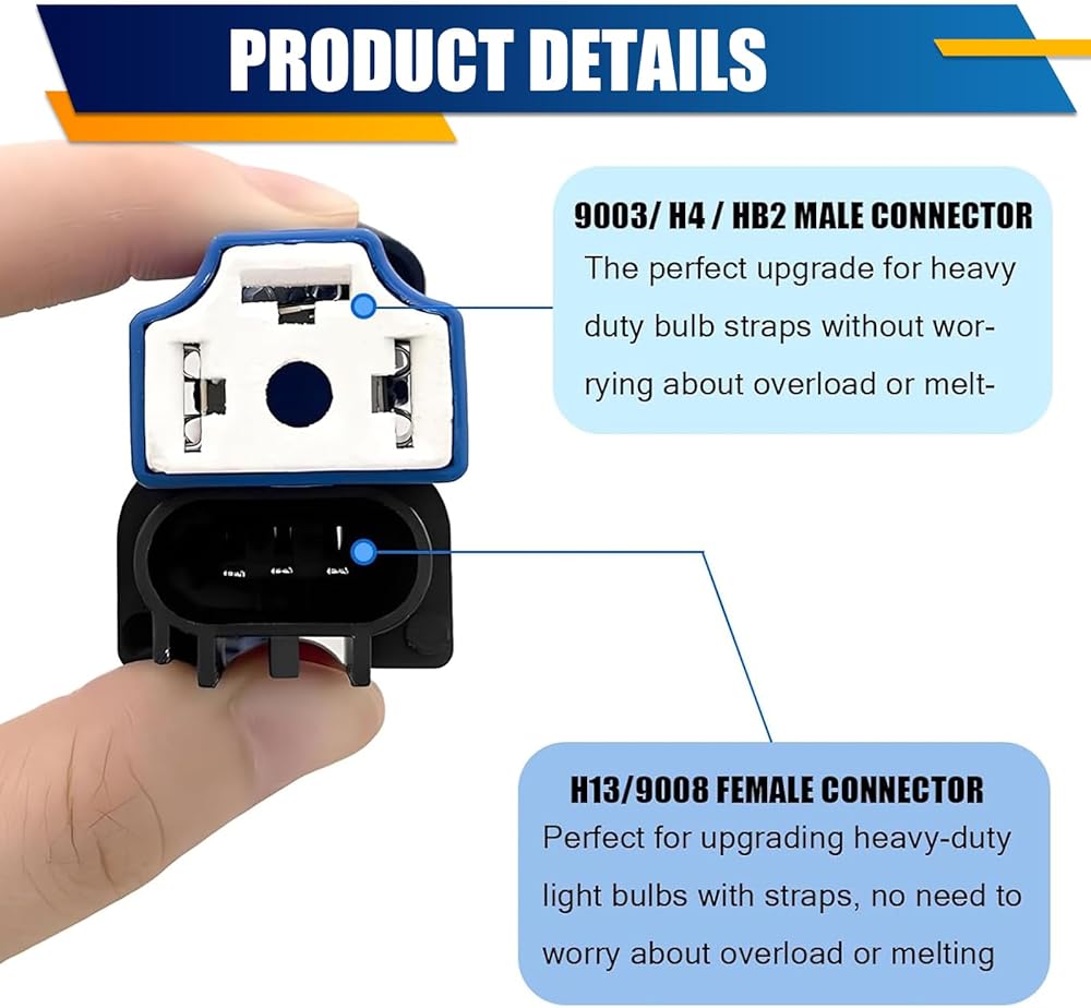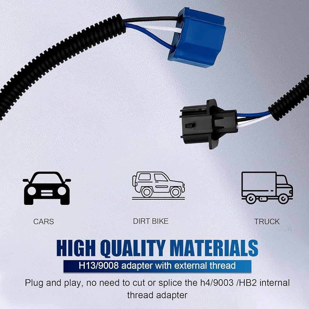 Universal Light Conversion Adapter Set: This 2 pcs adapter kit enables seamless compatibility between H4 and H13 headlight sockets, making it suitable for a wide range of car and motorcycle models. The conversion design simplifies the process of upgrading or replacing lighting systems.