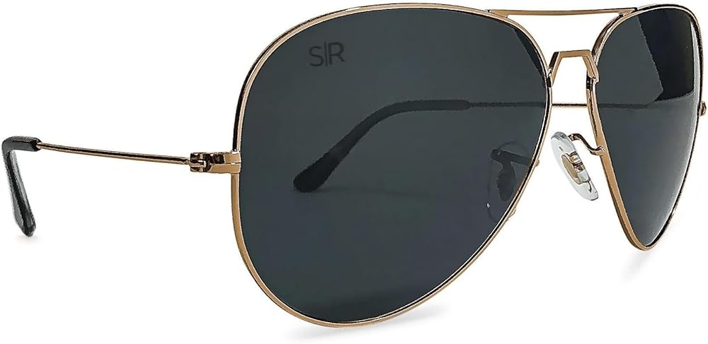 • POLARIZED AVIATOR SUNGLASSES FOR MEN AND WOMEN: Ultra Premium Polarized Black TAC (Tri-Acetate Cellulose) Lenses with 100% UV protection - made to be shatter-resistant, scratch-free and ultra lightweight. Dark gray tint, great for really bright and sunny days. Visual Light Transmittance (VLT): 8%