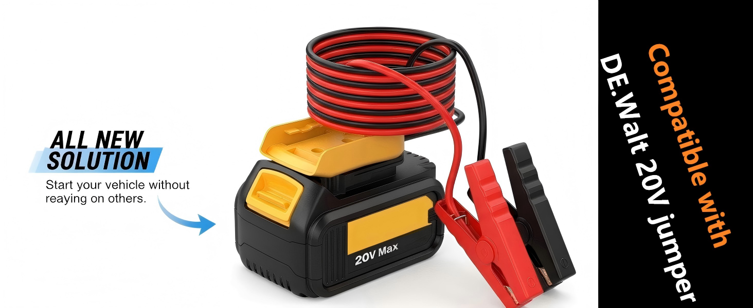 • حل جديد تمامًا: يمكّنك كابل Jump Starter الخاص بنا من تشغيل سيارتك في حالات الطوارئ مثل انخفاض البطارية أو عدم وجودها، دون الاعتماد على مركبات أخرى، مع محول طاقة آمن ومحول، متوافق تمامًا مع نماذج البطاريات المدعومة (البطارية غير متضمنة).