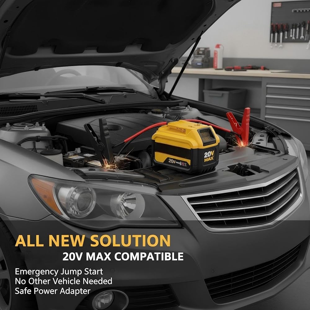 • تطبيق واسع: تعمل المشاركة بلمسة واحدة على قفل المحول بقوة في حاوية البطارية، مما يحول بطارية أداة الطاقة الخاصة بك على الفور إلى مشغل قفز محمول. - يمكن ربطه بسلاسة. مثالية لمجموعة من التطبيقات بما في ذلك السيارات والدراجات النارية وسيارات الدفع الرباعي الصغيرة والجزازات