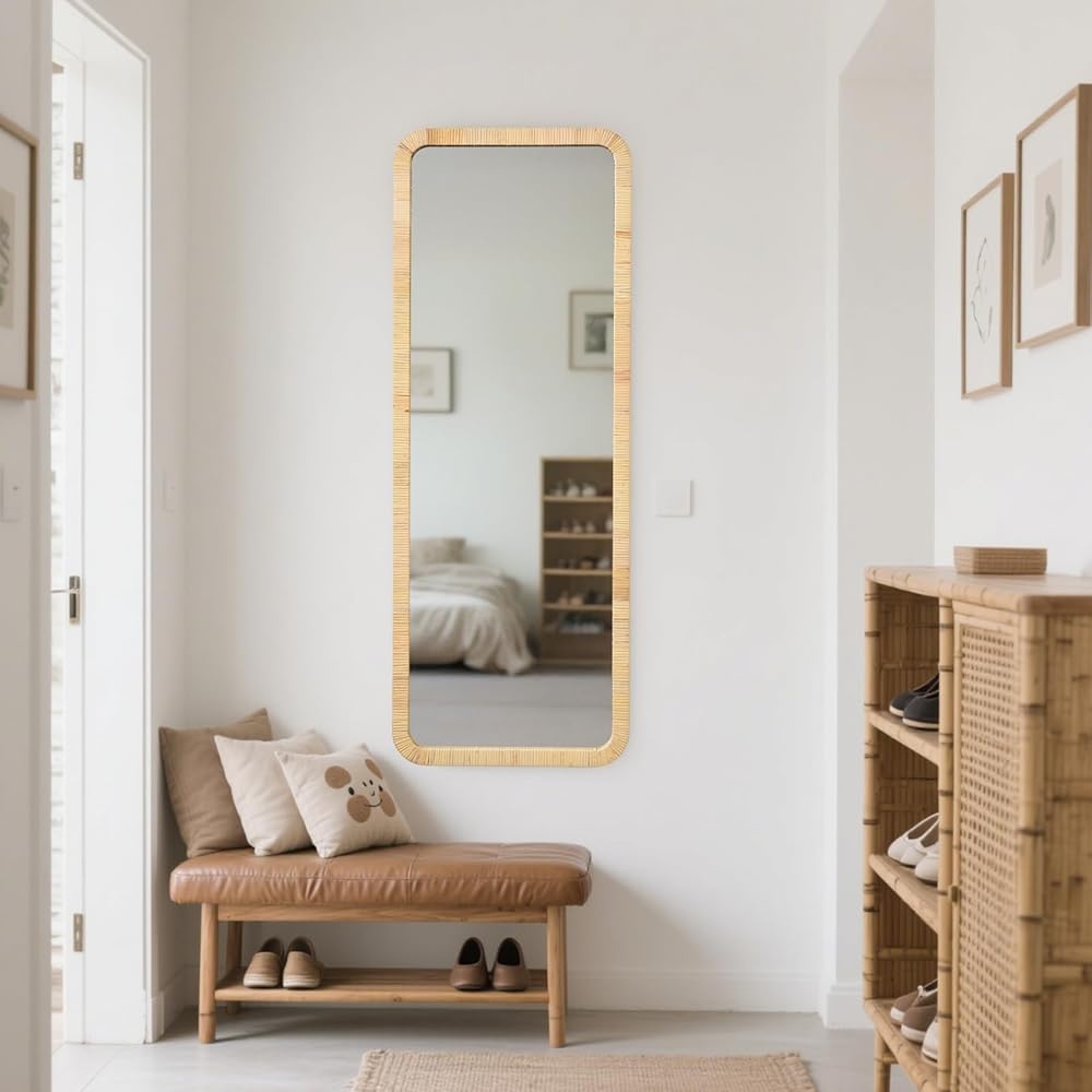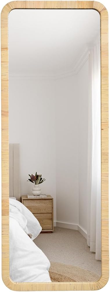 Rattan Full Length Mirror: Featuring natural rattan material around the frame, this rectangle floor mirror brings a dash of modern, minimalist appeal to your space. A great anchor piece for your living room, entryway, bathroom or master suite, this rattan wall mirror will instantly make your interiors appear spacious and more inviting.
