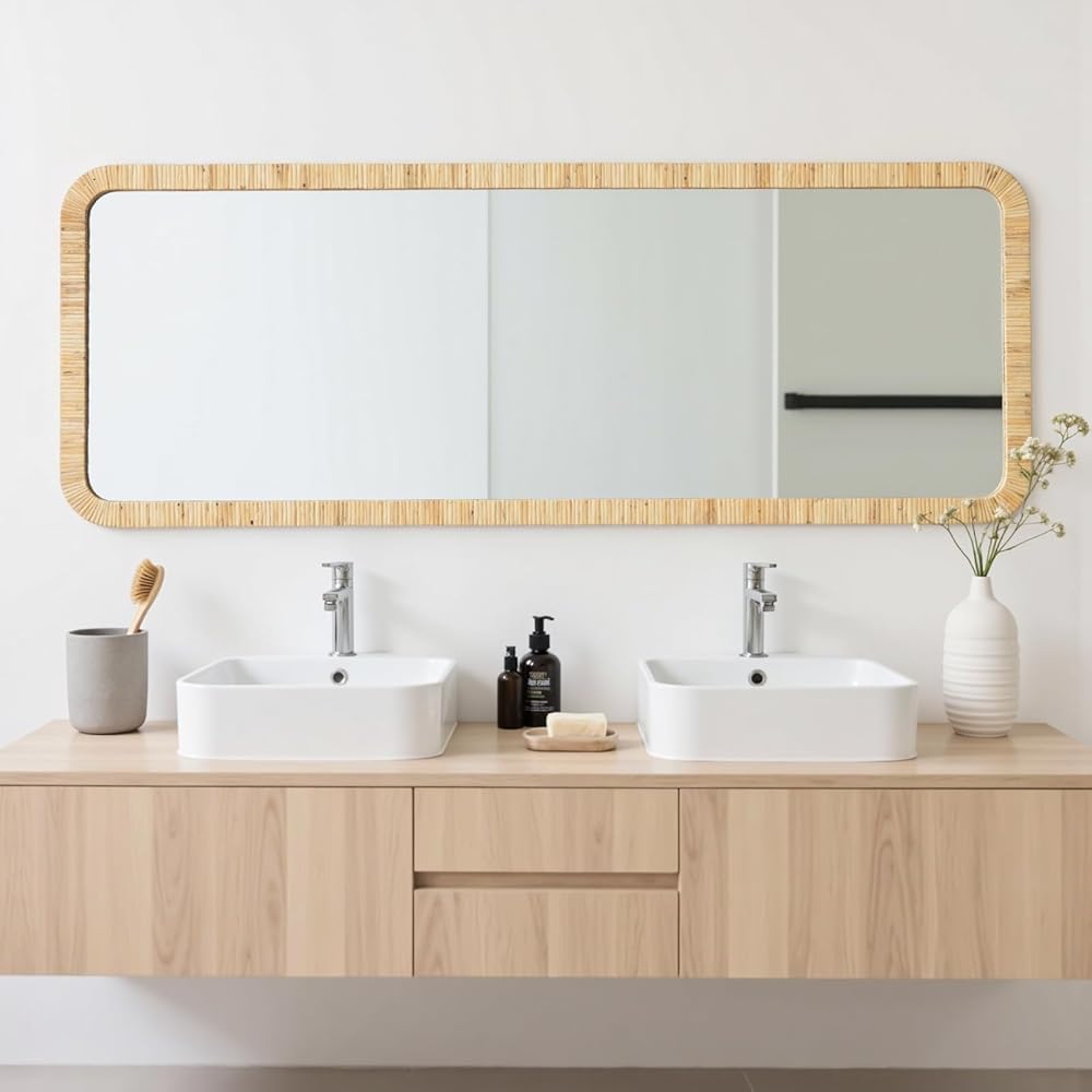 Easy to Install: The rattan bathroom mirror is light overall and can be hung vertically or horizontally, easy to install, not easy to shake. Hang this mirror in any way that works best for your space.