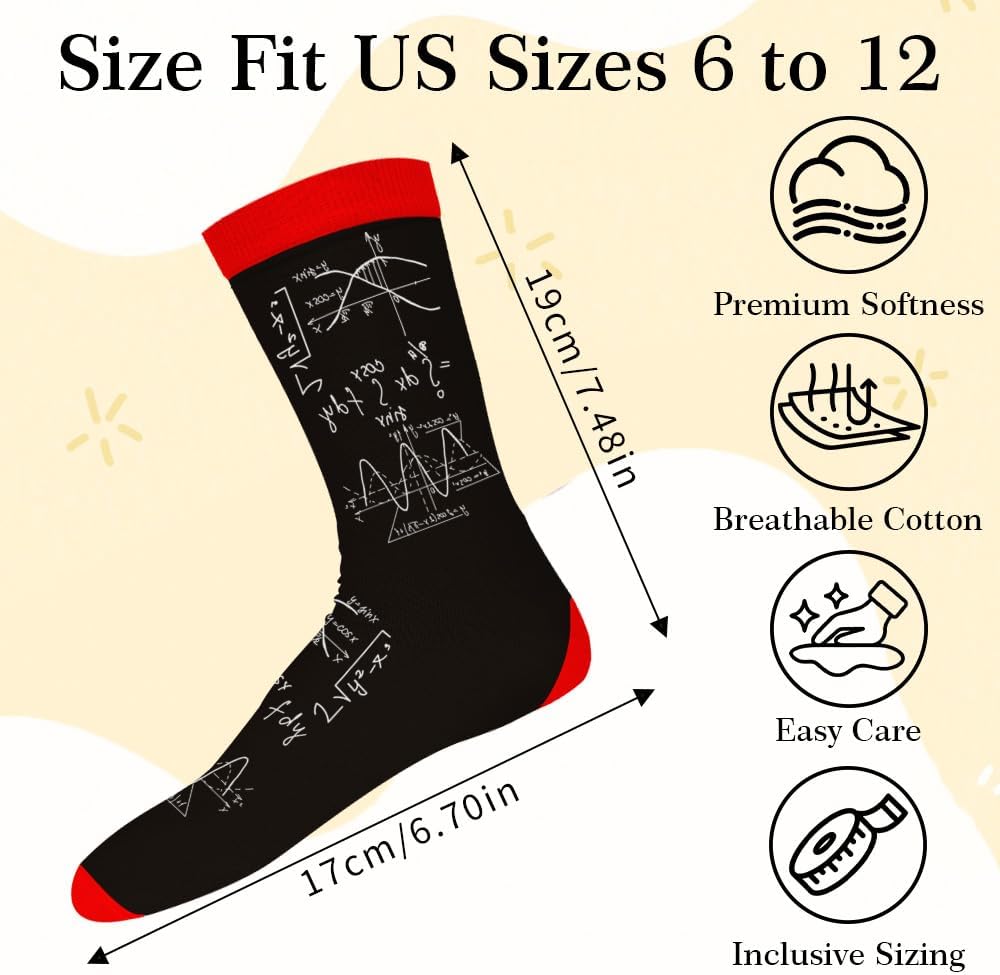 • What's Included: One unisex pair of cute womens socks fits US 6-13.A top-tier pick for math teacher gift. Math socks men, gift for professor men, , math teacher appreciation gifts.