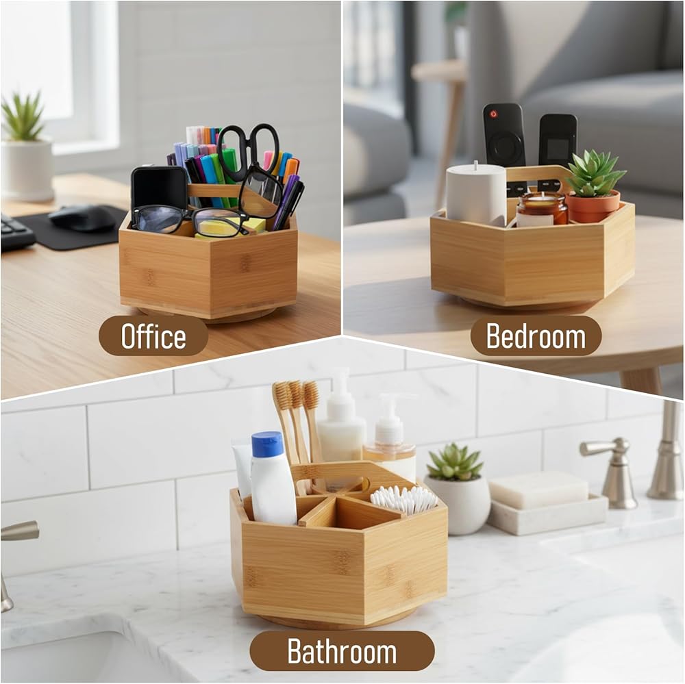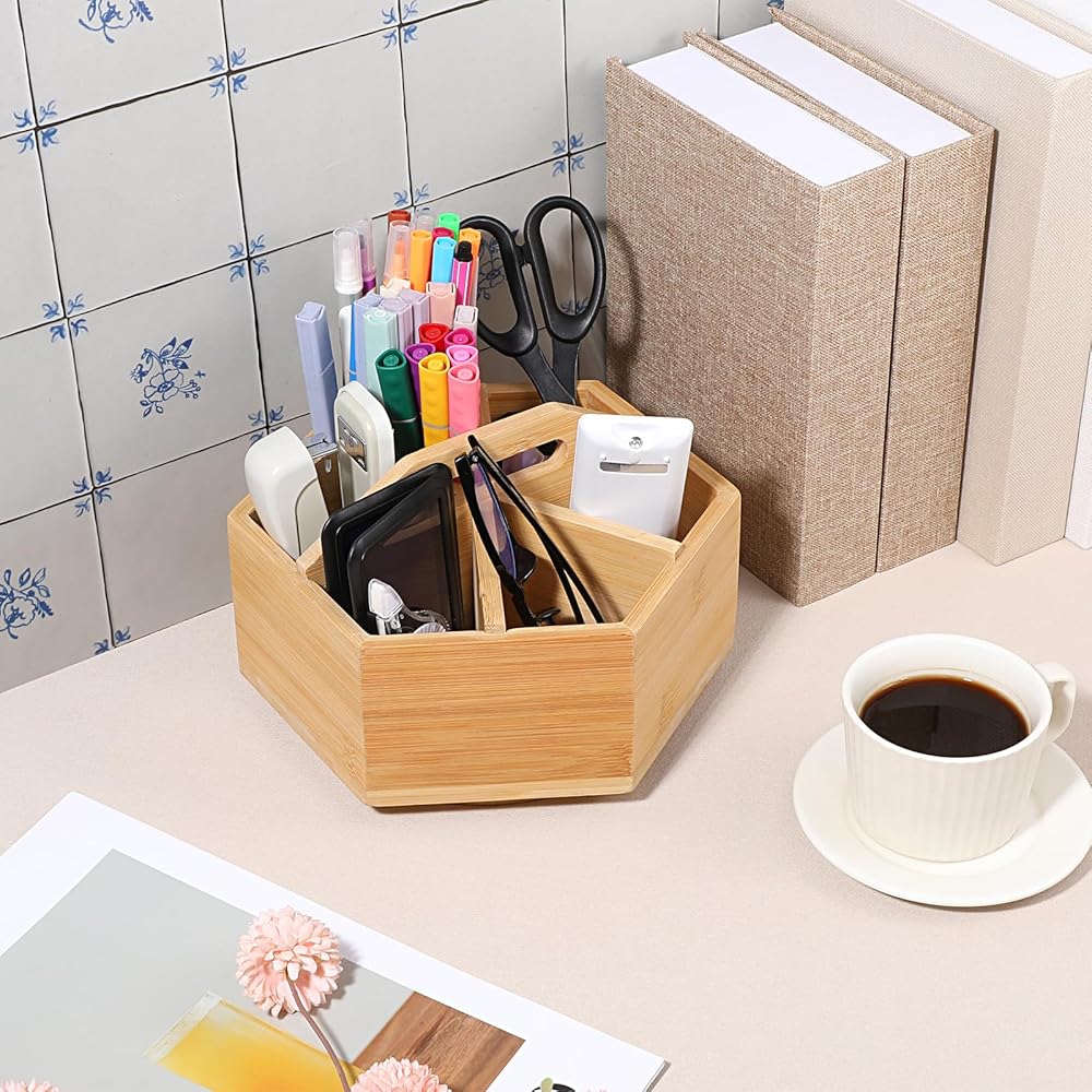 Smart 6-Compartment Hexagon Design: This versatile organizer features six spacious compartments, allowing you to customize storage for markers, pens, brushes, cosmetics, or kitchen items. Its innovative hexagonal shape maximizes space efficiency while keeping supplies neatly separated and easily accessible.
