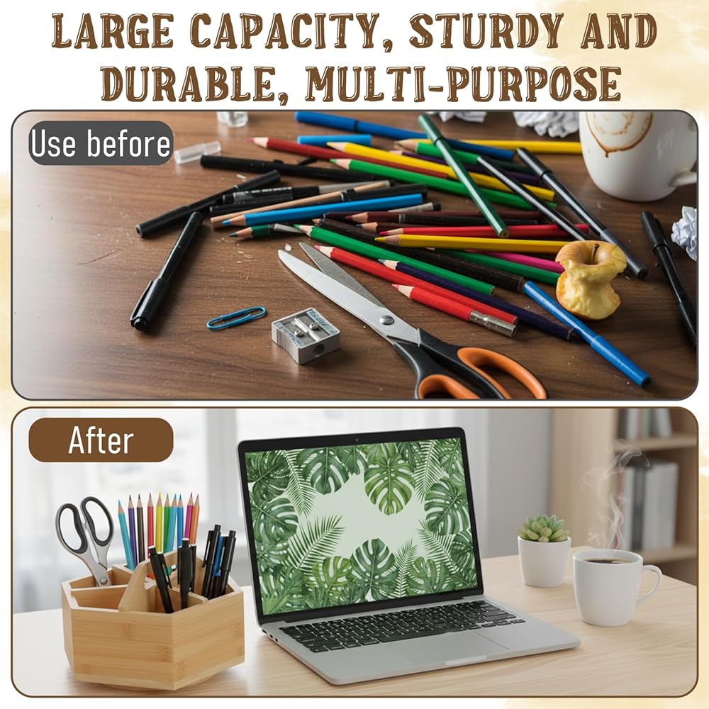 Premium & Sustainable Bamboo Construction: Crafted from 100% natural bamboo, this organizer is both eco-friendly and built to last. It requires no assembly, resists warping, and offers a smooth, easy-to-clean surface that adds a touch of natural style to any desk, counter, or studio.