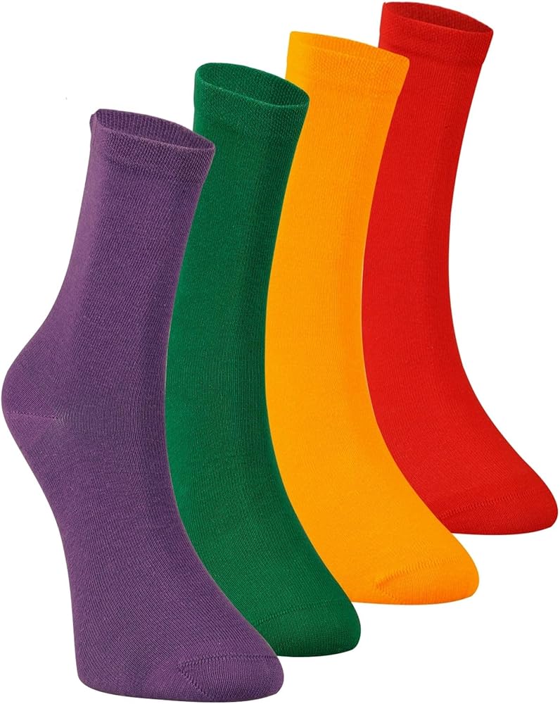 Foursolos women cotton crew socks are designed for women who seek everyday comfort combined with colorful and expressive style. Created to fit US women's shoe sizes 6–9, these socks are suitable for daily wear, casual routines, commuting, and relaxed lifestyle use. Their classic crew length provides balanced coverage while maintaining a comfortable and secure fit throughout the day. Crafted from cotton-based fabric, these socks offer breathability and moisture control to help keep feet dry and comfortable during everyday activities. The breathable structure supports airflow, while the soft cotton texture feels gentle against the skin, making the socks suitable for extended wear and frequent use. The material is designed to maintain comfort during walking, standing, and long daily routines. The lightweight construction allows natural foot movement without adding bulk inside footwear. Designed to fit comfortably in casual shoes and sneakers, these socks help reduce friction and pressure, supporting overall comfort during long hours of wear. Their balanced structure makes them a practical choice for everyday footwear. This set includes four pairs of women cotton socks in vibrant solid colors: green, purple, yellow, and red. The colorful variety adds energy and personality to casual outfits while allowing easy rotation throughout the week. Each pair delivers the same level of comfort and breathability, ensuring consistency in daily use. Durable, soft, and thoughtfully designed, Foursolos women cotton crew socks combine practical comfort with colorful style. They are an ideal everyday essential for women looking for breathable socks that support comfort while adding brightness and character to their daily wardrobe.
