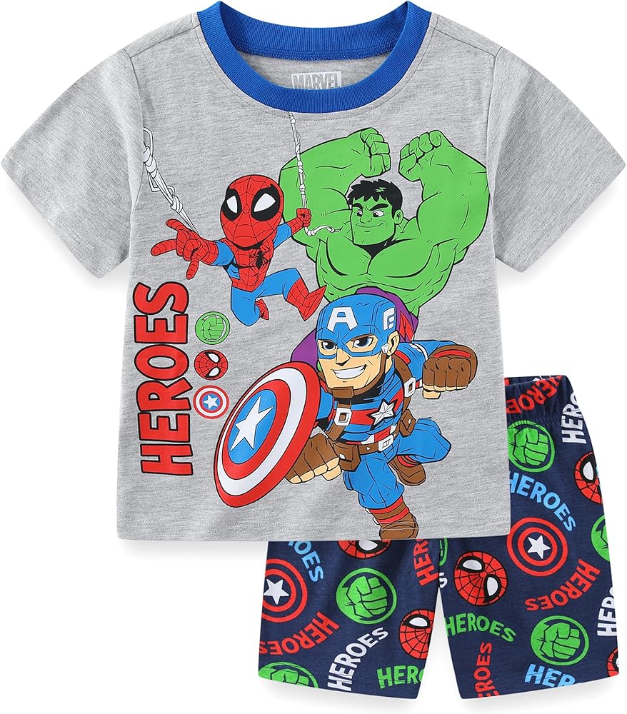 • ألبس طفلك الصغير هذا القميص الرائع والمريح من Marvel Ironman وCaptain America وHulk قصير الأكمام وسروال قصير للأولاد الصغار. أطقم ملابس الأولاد الصغار المثالية لأبطال Marvel الخارقين، قمصان علوية وسفلية للأولاد