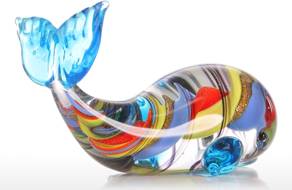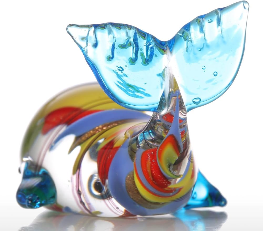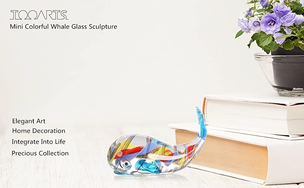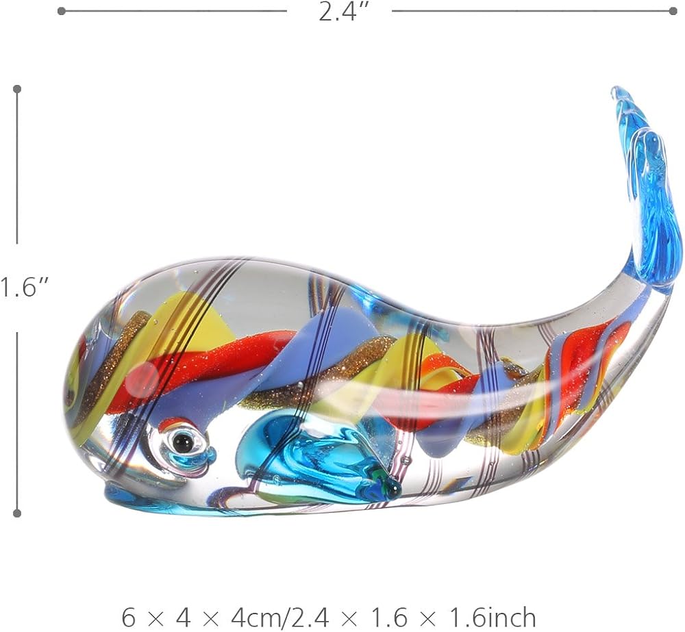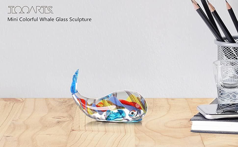 Tooarts الملونة الحوت النحت الزجاج الحوت تمثال زخرفة اليد في مهب متعدد الألوان، هدية عيد ميلاد عيد الميلاد