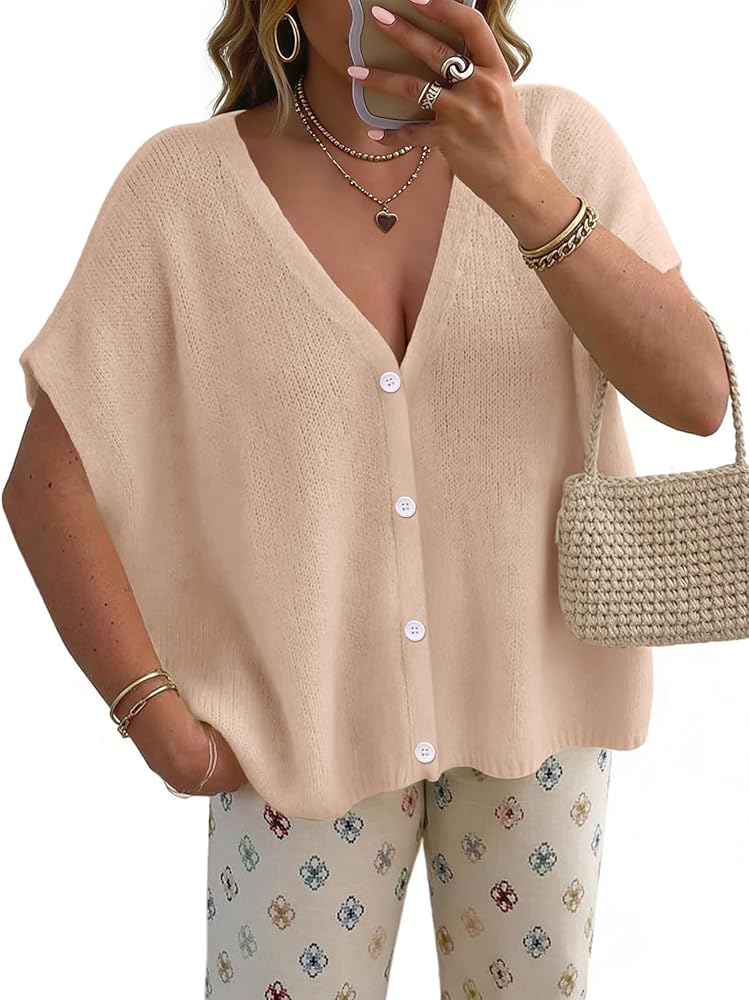• تصميم صورة ظلية فضفاض عصري - متعدد الاستخدامات وجذاب للجميع: يتميز بمزيج خالد من الأكمام القصيرة على شكل جناح الخفاش، وخط عنق على شكل حرف V، وزر إغلاق أمامي، بالإضافة إلى أكتاف واسعة، وملاءمة مريحة، توفر هذه السترة نمطًا كاجوال أنيقًا دون عناء. يكمل لونه الأنيق ذو اللون الصلب مجموعة واسعة من الملابس، مما يتيح لك احتضان أجواء عصرية ومريحة بسهولة.