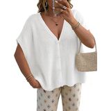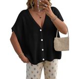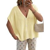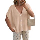 سترة نسائية كبيرة الحجم بأكمام قصيرة وخفيفة الوزن وزر على شكل حرف V كاجوال منسوجة وأغطية للشاطئ in Kuwait
