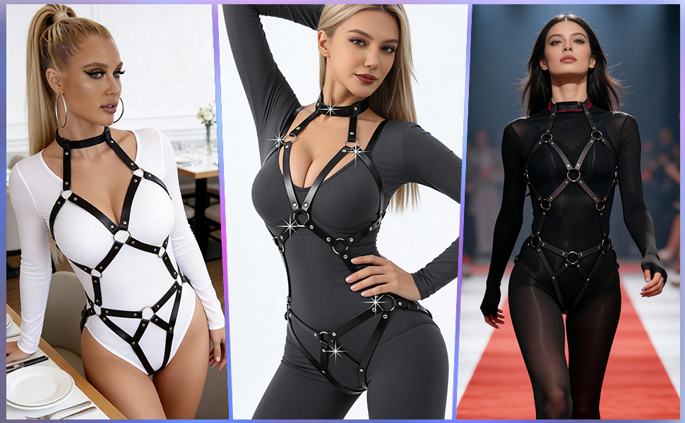 • 4. إكسسوار تصميم ملابس متعدد الاستخدامات مصمم كإكسسوار طبقات، يمكن ارتداء حزام الجسم هذا فوق ملابس غير رسمية أو مميزة لإضافة البعد. يتناسب جيدًا مع الفساتين السوداء والقمصان القصيرة والقمصان كبيرة الحجم والسترات الصوفية والسترات من أجل التصميم الإبداعي.