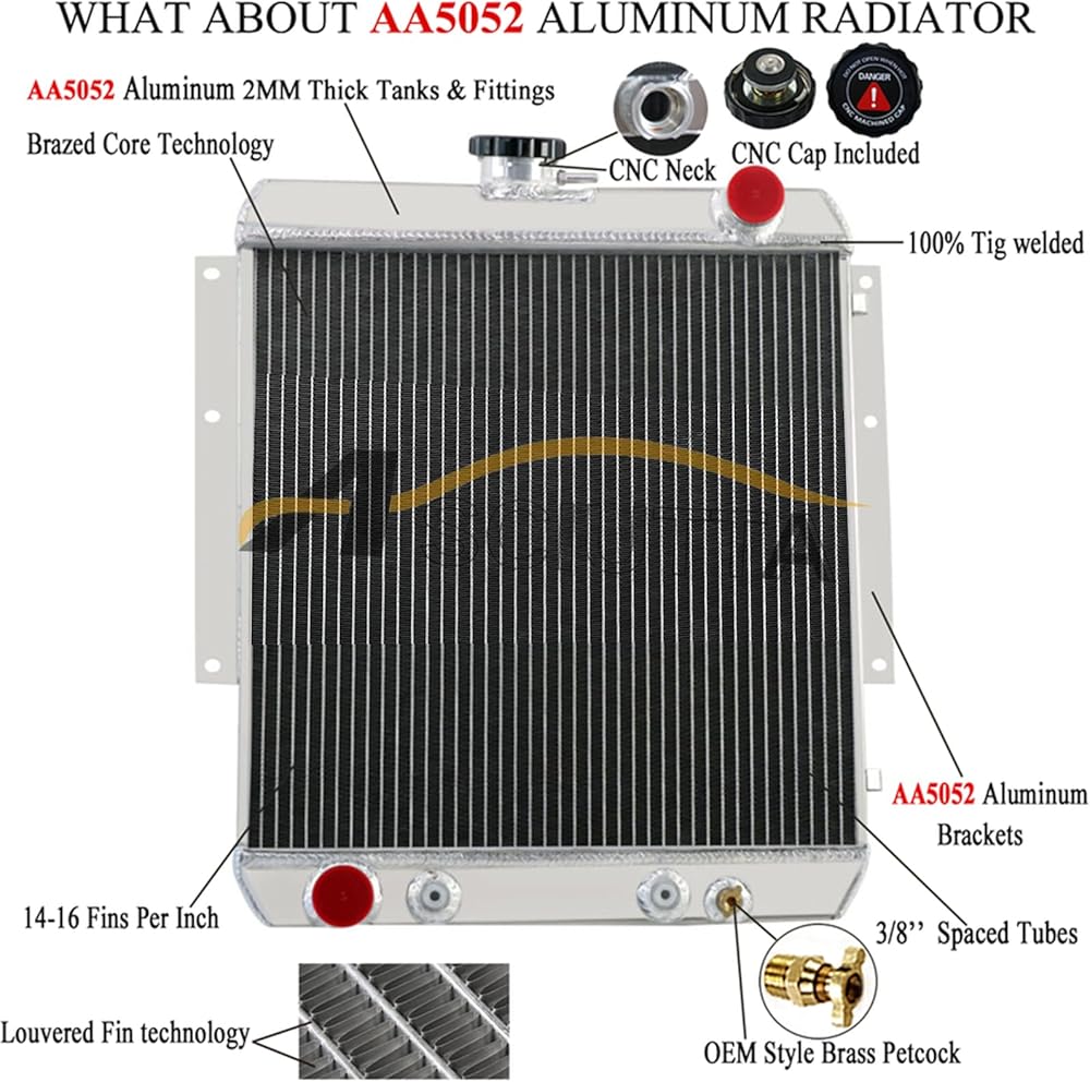 • Features: 100% Leak Tested, 4 Rows, Durability Tested, No Drilling or Modifications Needed for Installation ; Placement on Vehicle: Engine Compartment