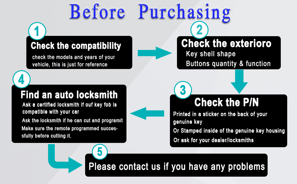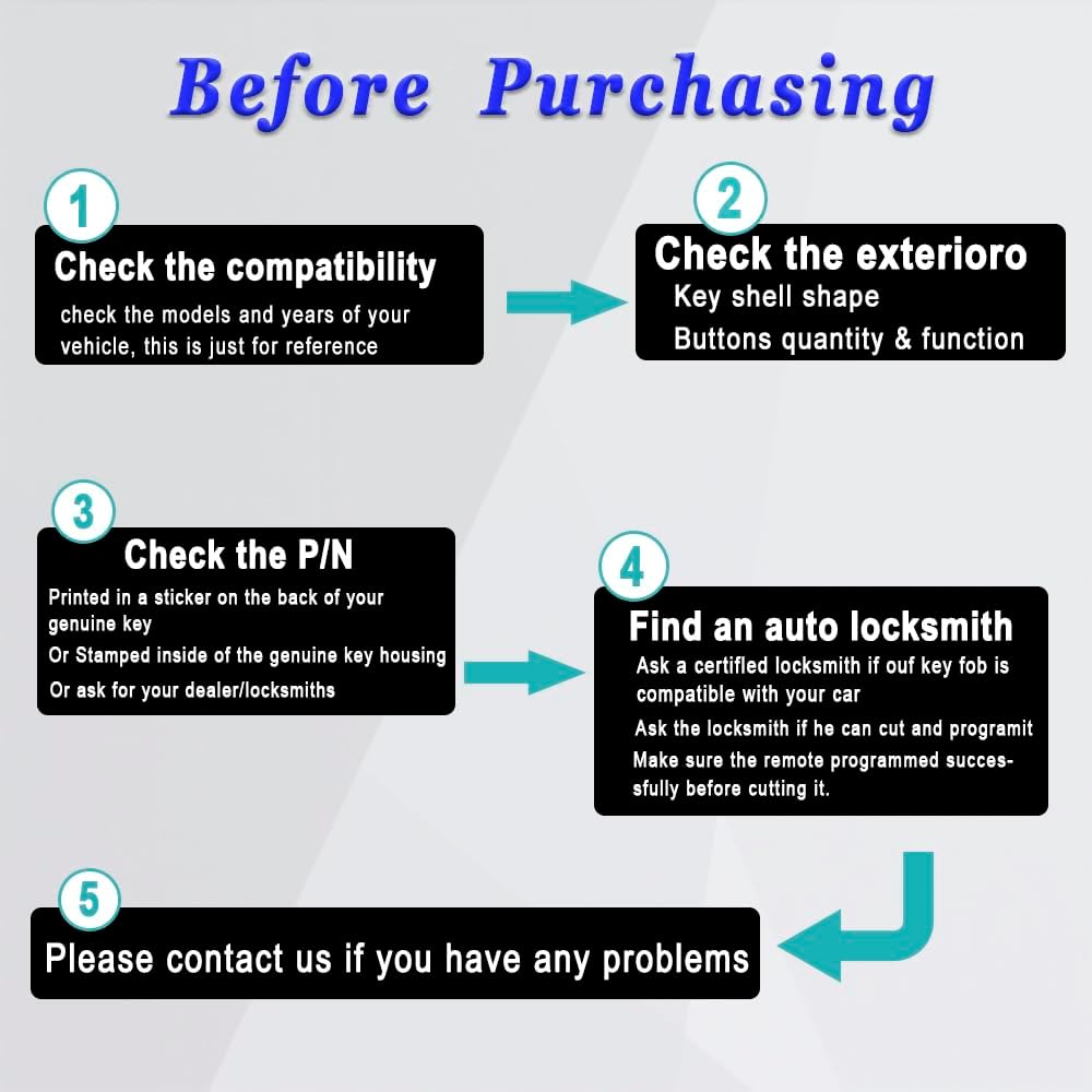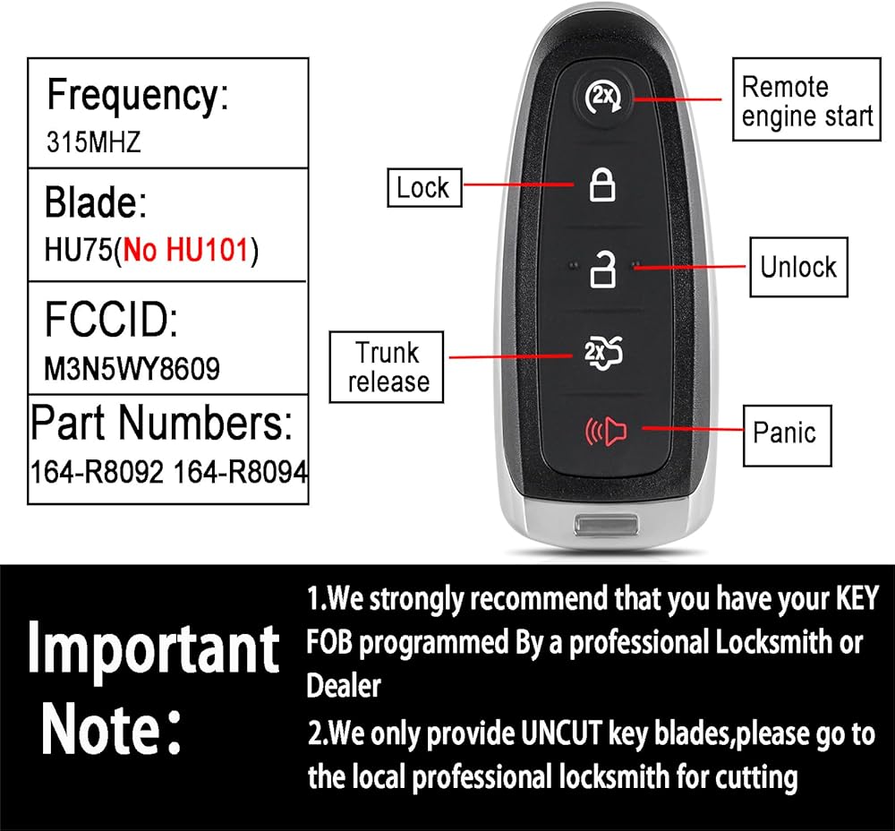 البرمجة: نوصي بشدة ببرمجة مفتاح FOB الخاص بك بواسطة صانع أقفال أو تاجر محترف. نحن نقدم فقط شفرات المفاتيح غير المقطوعة، يرجى الذهاب إلى صانع الأقفال المحترف المحلي للقطع