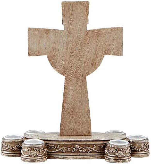 حامل شموع صليب مع 6 حوامل مستدقة - عرض تعبدي للصوم الأسبوعي - صليب راتنج مزخرف لطاولة الصلاة أو مذبح المنزل - ديكور انعكاس كاثوليكي للصوم